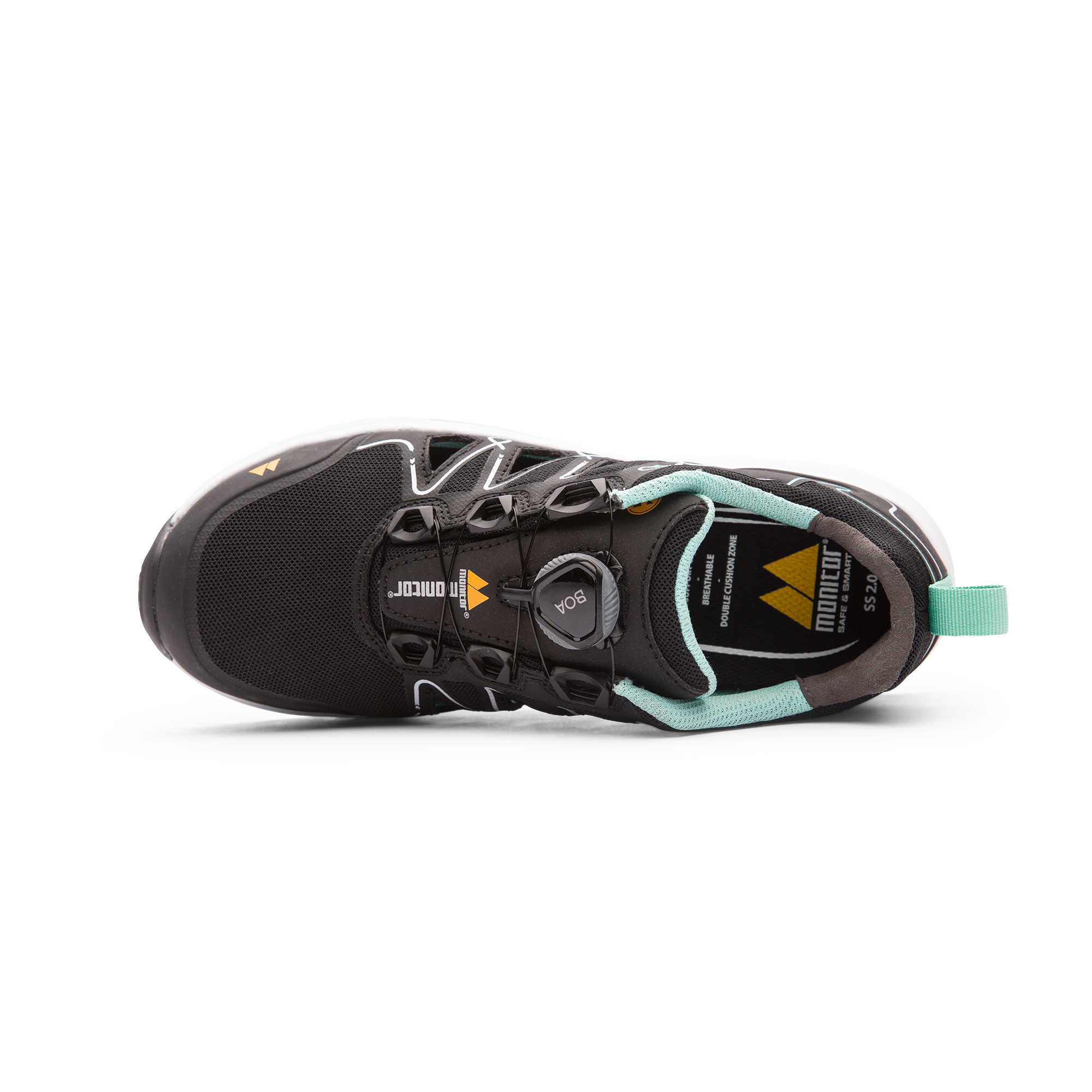 Die Monitor Mint Safety Sandalen sind leichtgewichtig und belüftet, mit breiter Aluminiumzehenkappe und Pantzar APT Spikeschutz, speziell für Damen. Der Schuh besitzt ein Obermaterial aus Mikrofasern und Textil, eine M-Rebound Recover Zwischensohle sowie eine rutschfeste Gummisohle.