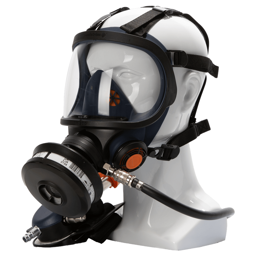 SR 200 Airline ist ein Atemschutzgerät, das bei Anschluss an ein Druckluftsystem einen kontinuierlichen Luftstrom liefert. Das Besondere an SR 200 Airline ist die Möglichkeit zu einem Filter-Backup. Der Atemschlauch kann sowohl von der Maske als auch vom Regelventil abgenommen werden. Die Ausrüstung kann dann als Filterschutz verwendet werden. SR 200 Airline lässt sich als Alternative zu Filterschutz in all den Situationen verwenden, in denen ein solcher empfohlen wird. Dies gilt insbesondere bei schweren oder langwierigen Arbeiten oder, falls die Verunreinigungen unzureichende Warnungseigenschaften besitzen bzw. besonders giftig sind. SR 200 Airline ist aus Werkstoffen gefertigt, die bei Reibung keine Funken erzeugen, so dass sich die Ausrüstung auch in explosions- und feuergefährlichen Umgebungen verwenden lässt. Einschließlich Strömungsmesser und Warnpfeife für zwischenzeitliche und kontinuierliche Prüfung der Luftmenge. Am Gürtel befestigtes Regelventil.