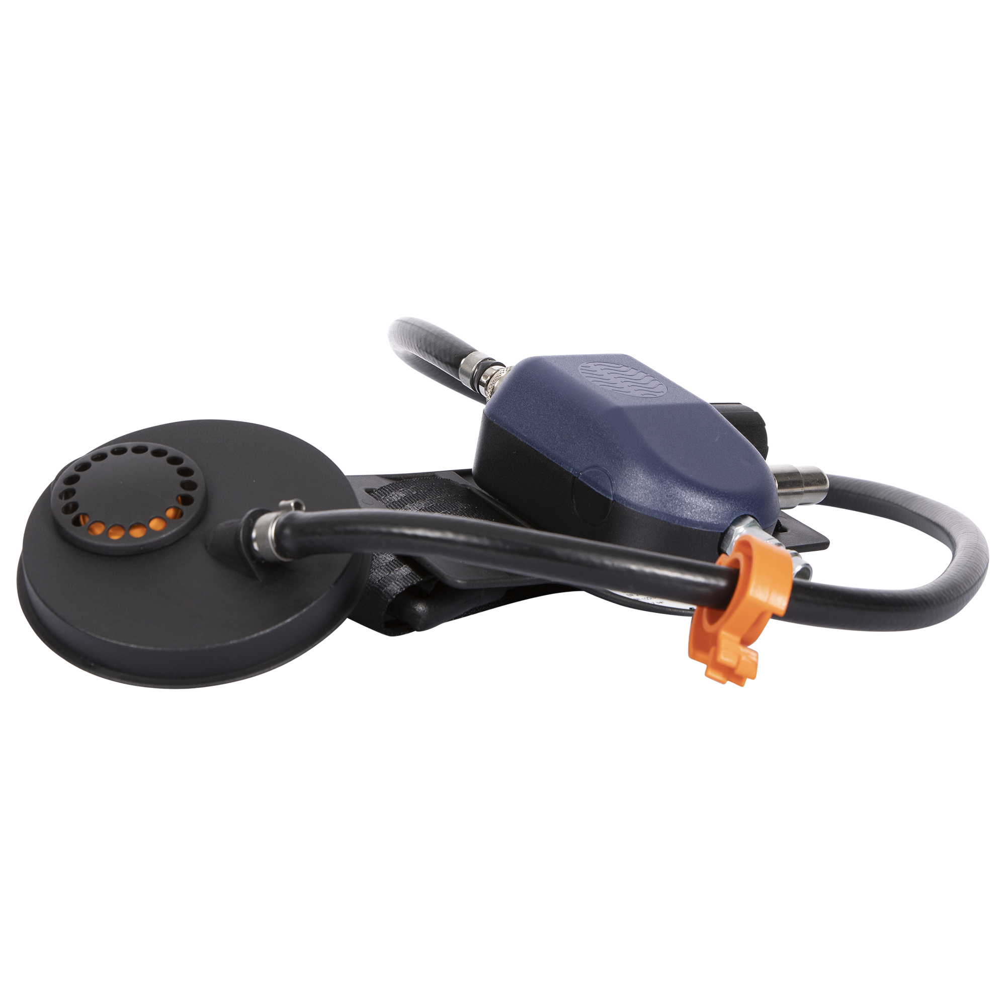 Der Druckluftzusatz SR 307 ist für den Anschluss an Sundströms Halbmasken oder Vollmasken vorgesehen. Eine derartige Kombination stellt ein Atemgerät mit kontinuierlichem Luftstrom für Druckluftanschluss dar. SR 307 ist ein Zubehörgerät und ermöglicht den Wechsel zwischen Filterschutz und Druckluftversorgung in ein und derselben Gesichtsmaske. Der Druckluftzusatz eignet sich besonders gut für schwere und langwierige Arbeiten sowie in Fällen, in denen die Verunreinigungen unzureichende Warnzeichen verursachen oder besonders giftig sind. SR 307 ist aus Werkstof fen hergestellt, die bei Reibung nicht zu Funkenbildung neigen, so dass sich das Gerät für die Ver wendung in explosionsgefährdeter/feuergefährlicher Umgebung zulässig ist. Einschließlich Strömungsmesser und Warnpfeife für zwischenzeitliche und kontinuierliche Prüfung der Luftmenge. Am Gürtel befestigtes Regelventil.