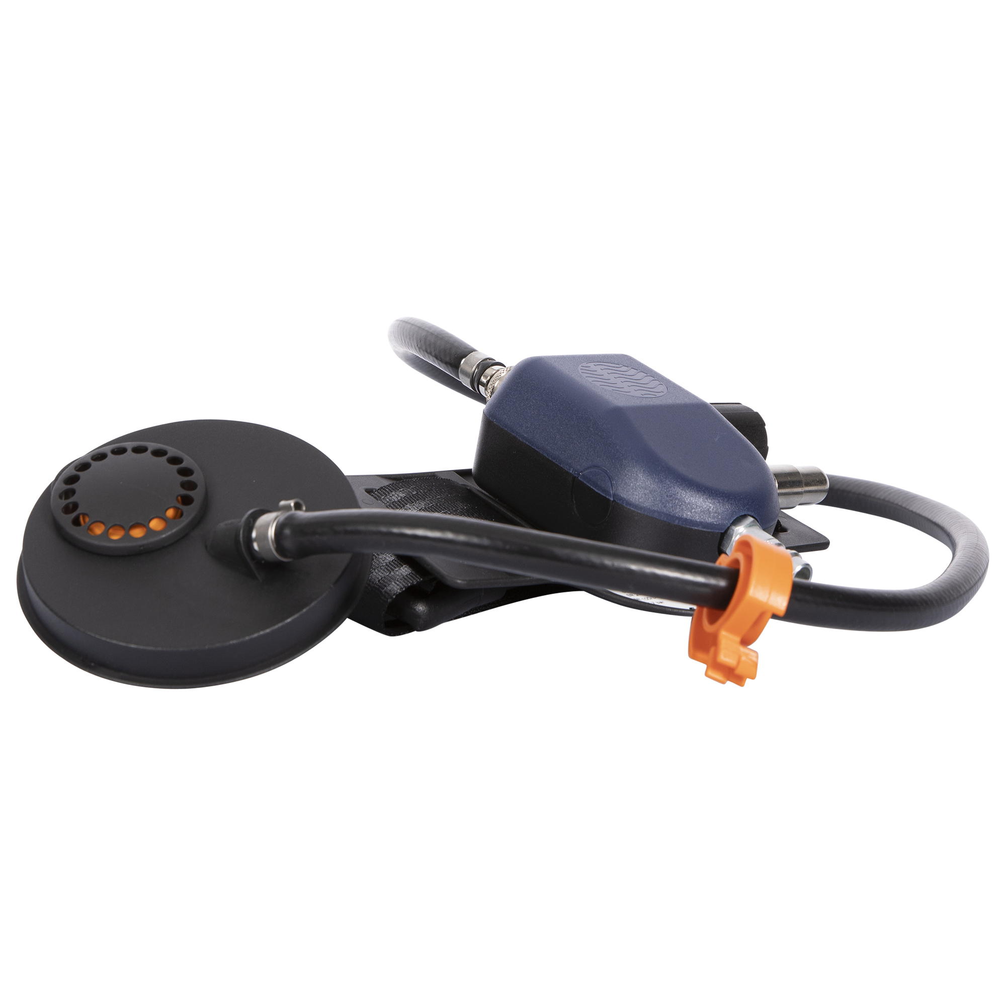 Der Druckluftzusatz SR 307 ist für den Anschluss an Sundströms Halbmasken oder Vollmasken vorgesehen. Eine derartige Kombination stellt ein Atemgerät mit kontinuierlichem Luftstrom für Druckluftanschluss dar. SR 307 ist ein Zubehörgerät und ermöglicht den Wechsel zwischen Filterschutz und Druckluftversorgung in ein und derselben Gesichtsmaske. Der Druckluftzusatz eignet sich besonders gut für schwere und langwierige Arbeiten sowie in Fällen, in denen die Verunreinigungen unzureichende Warnzeichen verursachen oder besonders giftig sind. SR 307 ist aus Werkstof fen hergestellt, die bei Reibung nicht zu Funkenbildung neigen, so dass sich das Gerät für die Ver wendung in explosionsgefährdeter/feuergefährlicher Umgebung zulässig ist. Einschließlich Strömungsmesser und Warnpfeife für zwischenzeitliche und kontinuierliche Prüfung der Luftmenge. Am Gürtel befestigtes Regelventil.