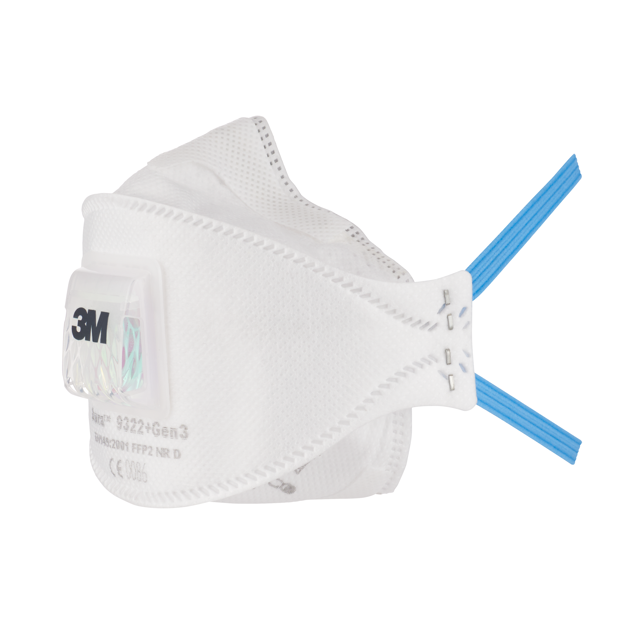 Die 3M™ Aura™ Partikelmasken Serie 9300+Gen3 ist die dritte Generation der meistverkauften Aura™ Partikelmaske mit dem originalen 3-teiligen, flach faltbaren Design.