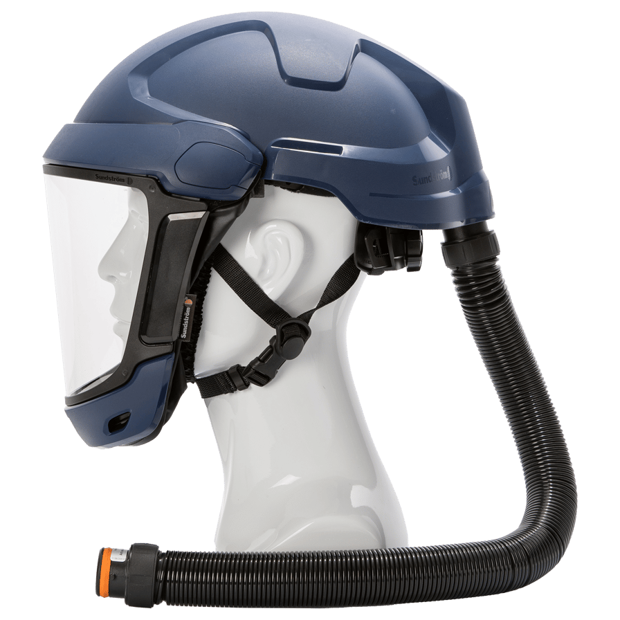 Zusammen mit der batteriebetriebenen Gebläseeinheit SR 500, SR 500 EX oder SR 700 und zugelassenen Filtern stellt SR 575 einen Teil des Atemschutzsystems mit Gebläseunterstützung von Sundström dar. Der Atemschlauch des Helm mit Visier wird an das mit Filtern versehene Gebläse angeschlossen. Der in dem Visier entstehende Überdruck verhindert Eindringen von Partikeln und anderen Verunreinigungen in die Atemwege. Die Ausrüstung lässt sich als Alternative zum Filterschutz in all den Situationen verwenden, in denen ein solcher empfohlen wird. Das gilt insbesondere bei schweren, warmen oder langwierigen Arbeiten.
