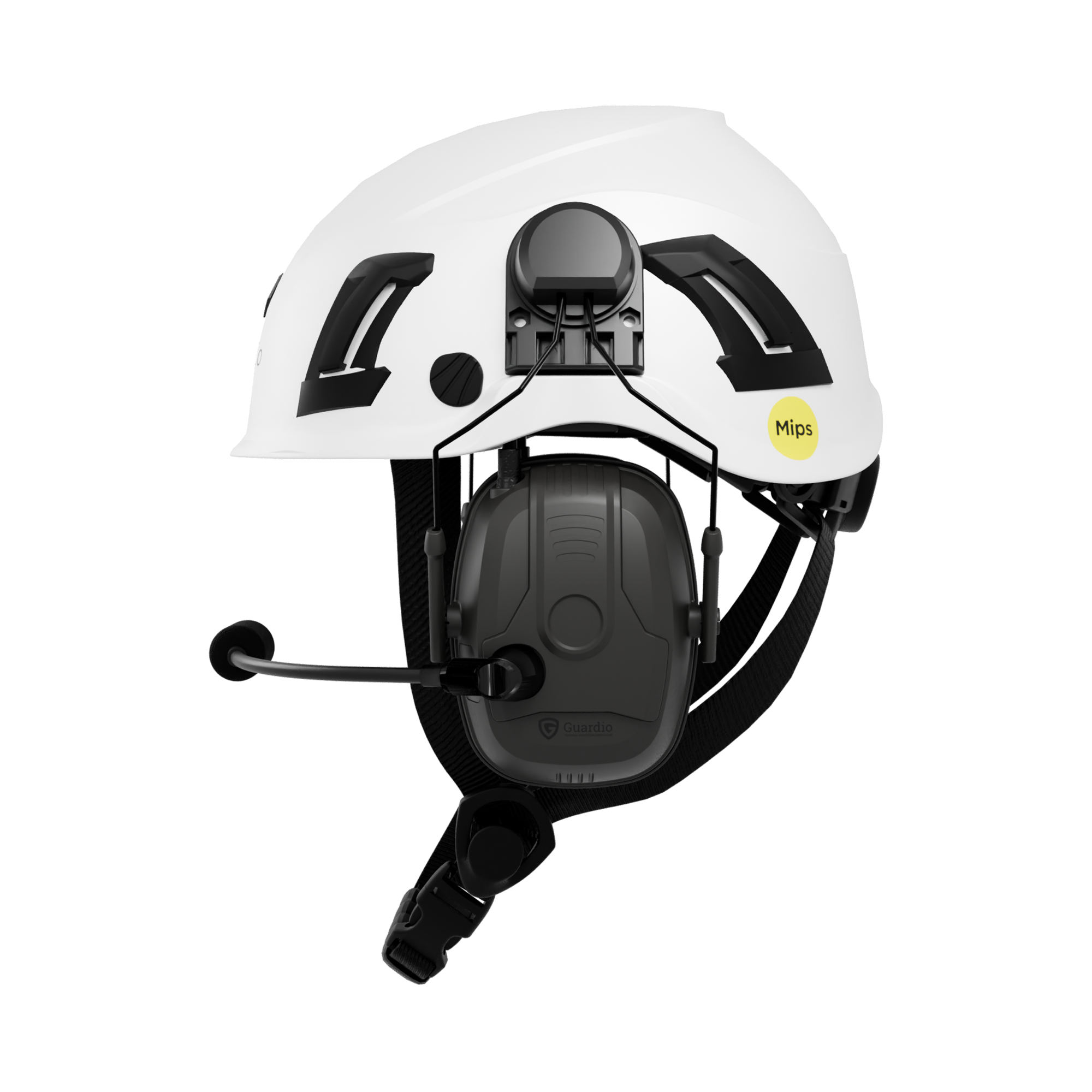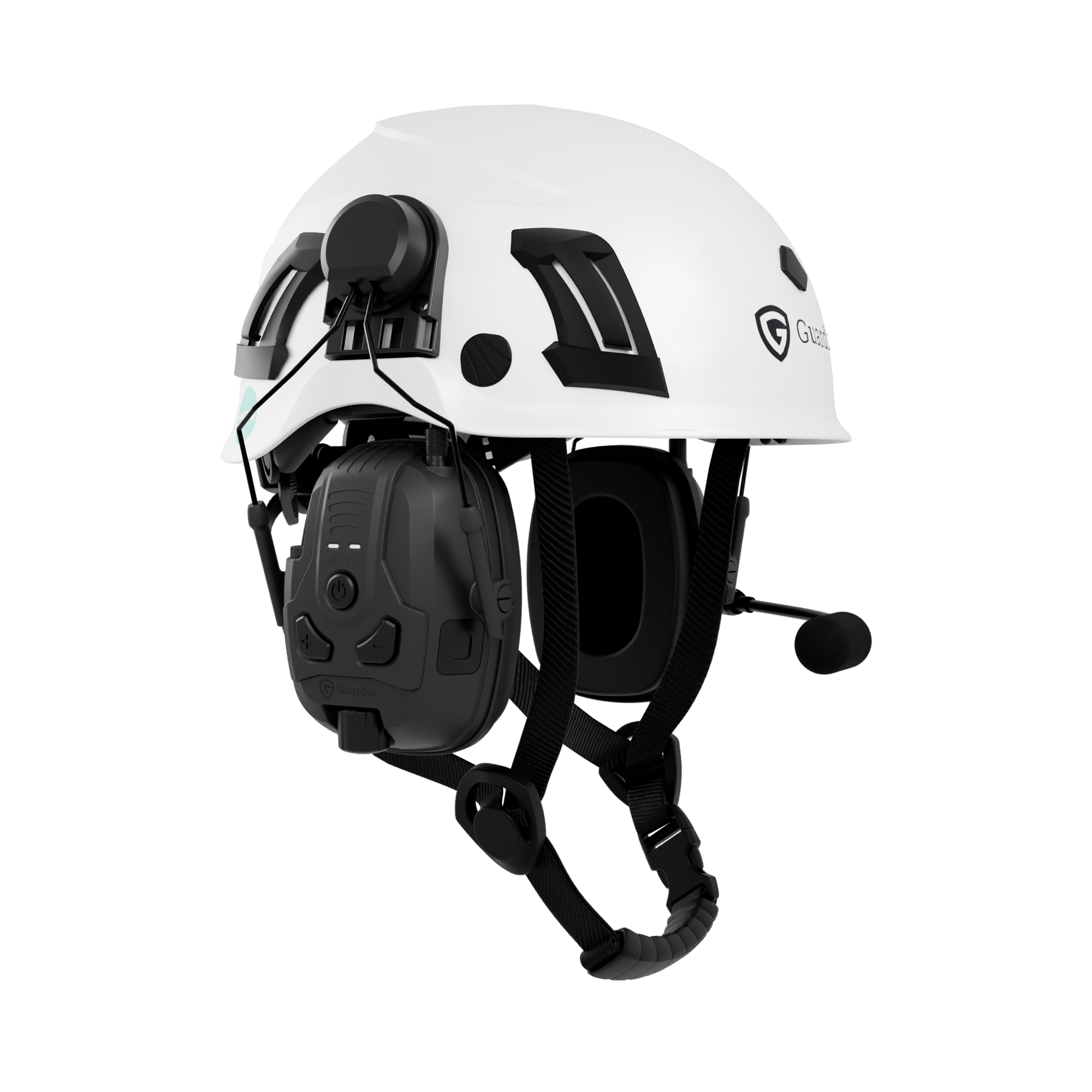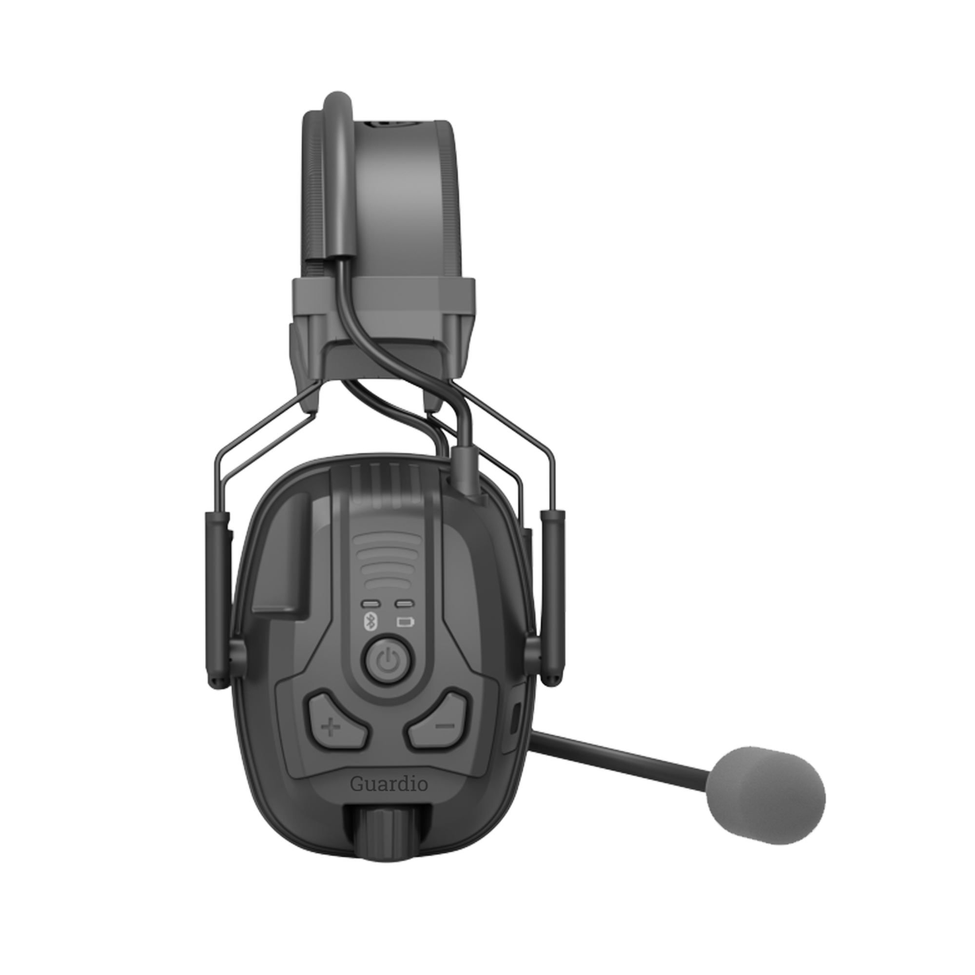 Guardio Freebird BT Gehörschutz mit Bluetooth v5.1, apt-X-Technologie und 120 Stunden Akkulaufzeit. Einfacher Wechsel zwischen Stirnband und Helmhalterung.