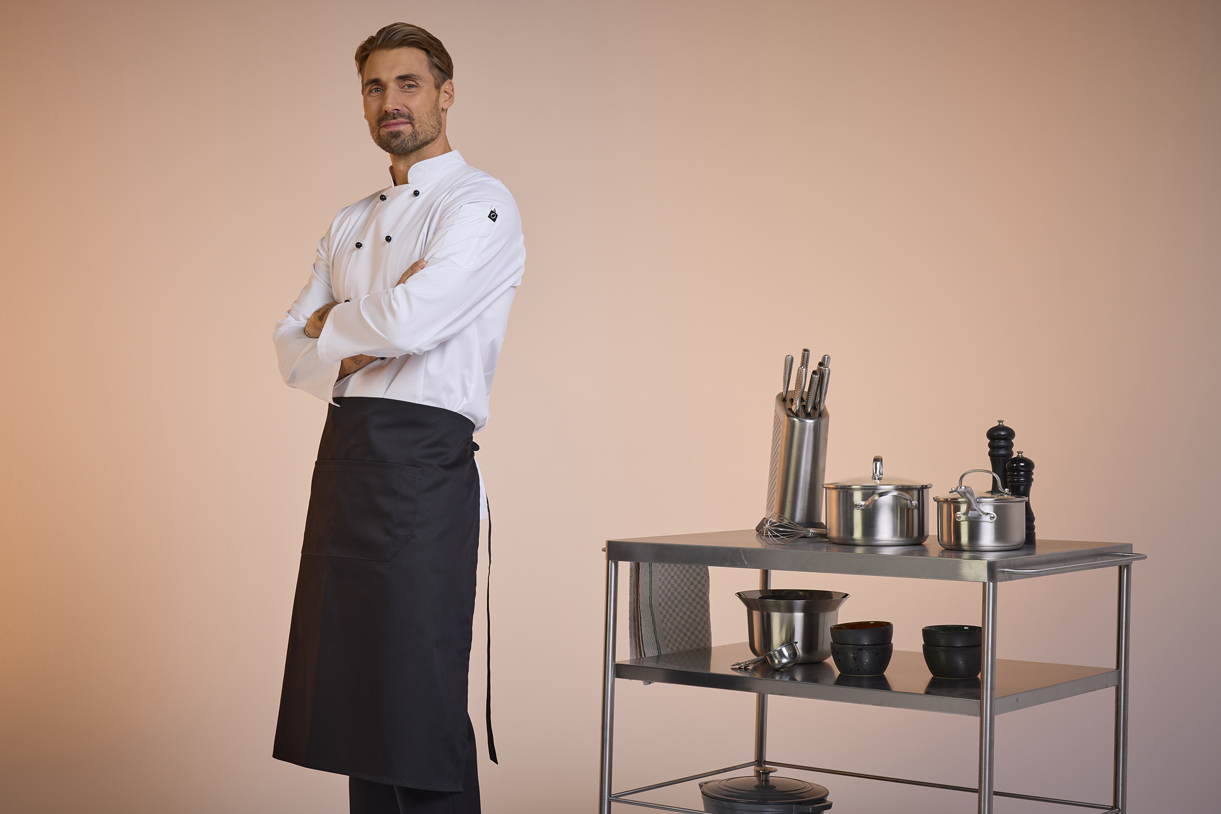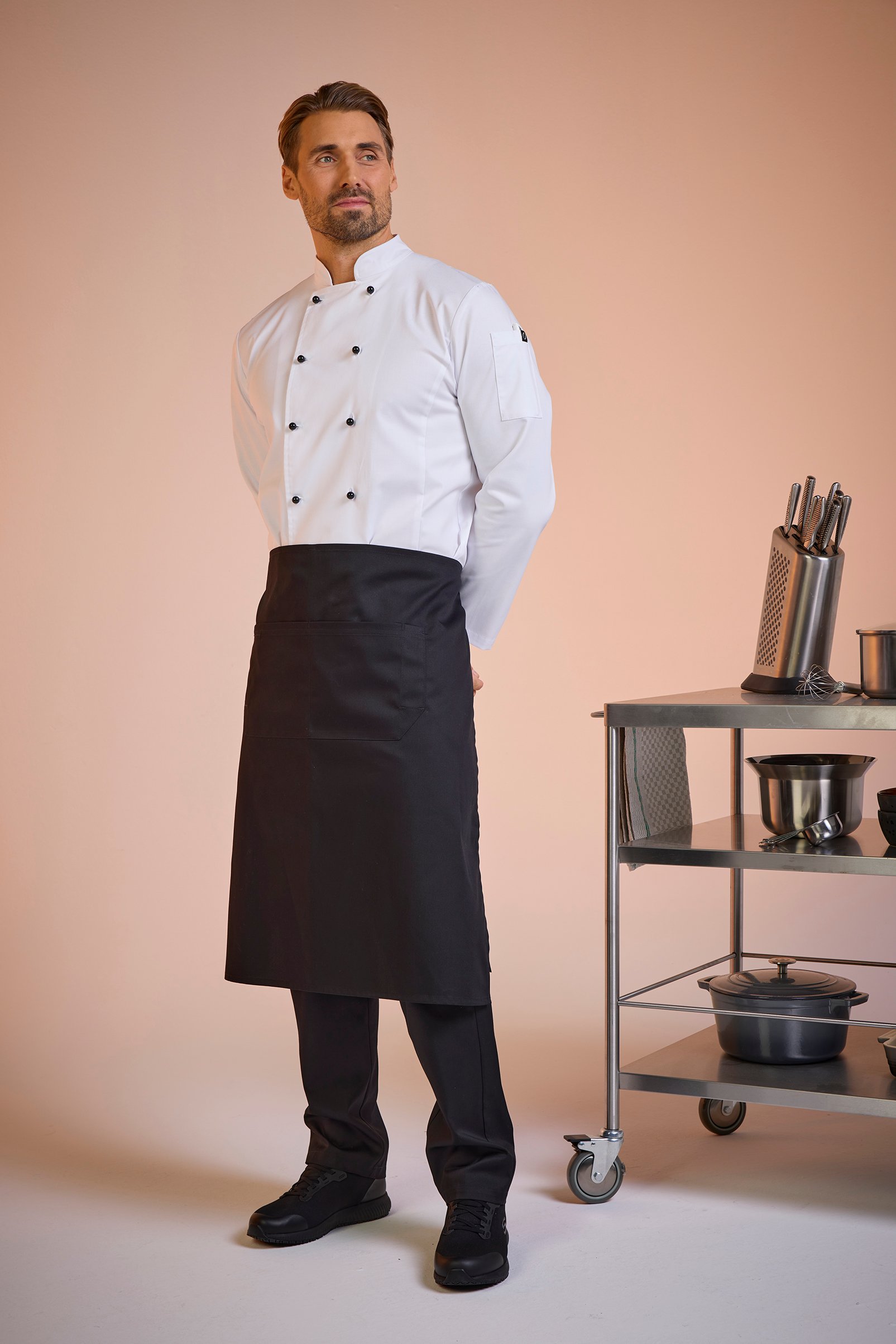 Discover the Eddie Waist Apron from South West. A classic waist apron with front pockets, including two pen pockets. The size is one-size-fits-all but can be individually adjusted using the adjustable waist ties. The apron has a loop on the inside of the waistband for hanging and a strap inside the pocket. Center front length: 70 cm, width at the bottom: 77 cm.