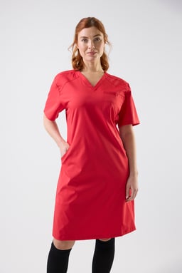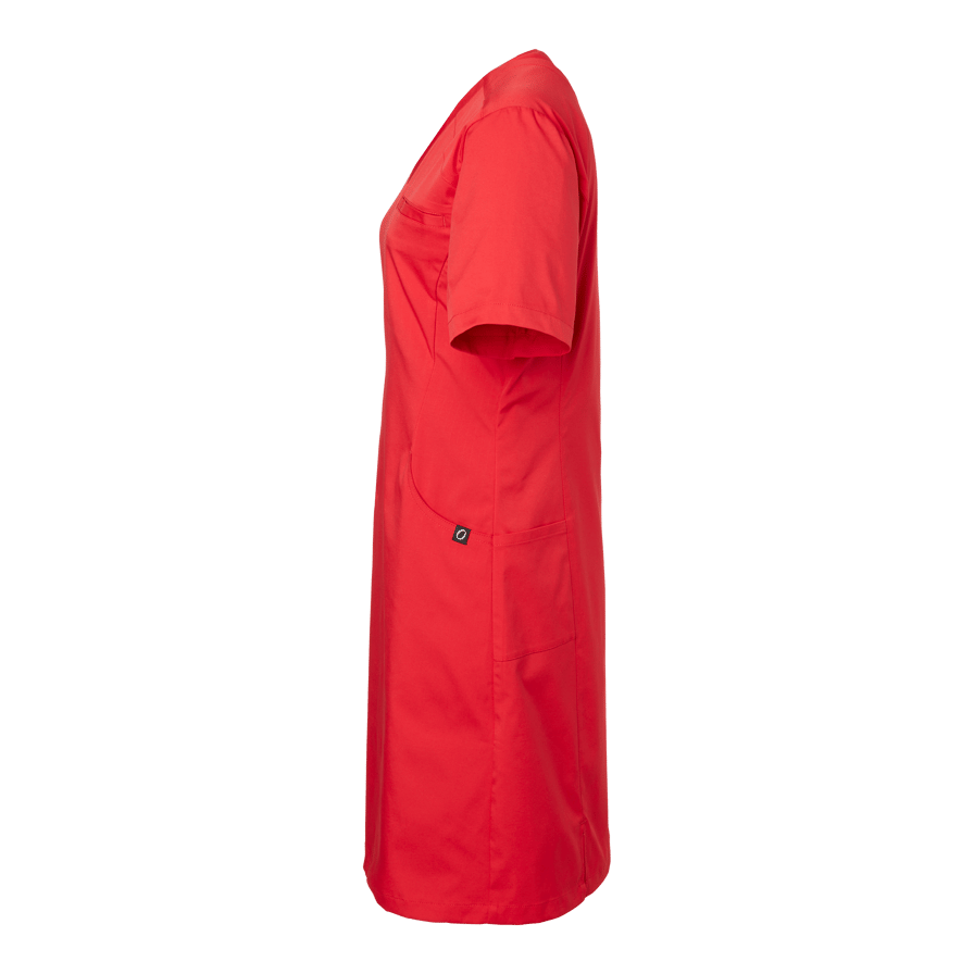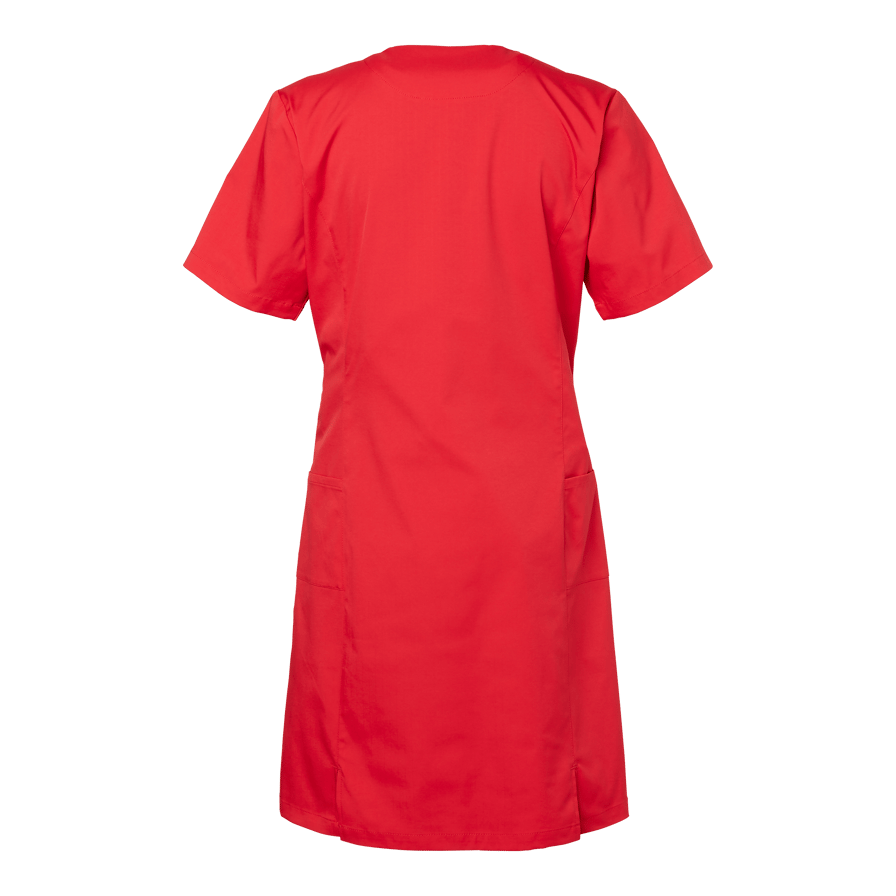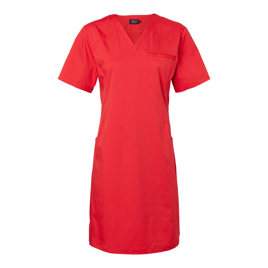 Lovi Dress is a stylish and functional dress from South West, designed to meet the high demands of healthcare and caregiving professions. With its modern V-neck, contoured princess seams, and gently fitted waist, it offers a feminine and professional silhouette while ensuring optimal comfort throughout the workday. Carefully selected materials and a thoughtful cut make Lovi Dress a perfect choice for those looking for medical clothing that balances style, function, and freedom of movement. Practical features make this dress an essential part of your work wardrobe: two spacious front pockets, one with an integrated phone pocket and key holder, a chest pocket, and discreet side panels with extra pockets. The subtle back slit adds flexibility, making it easy to move smoothly in a busy work environment. South West’s carewear is thoughtfully designed for those who care for others. With a focus on durability, comfort, and fit, these garments support a professional and polished look that lasts all day. Whether you work in healthcare, wellness, or another care-related field, Lovi Dress is a dependable garment that combines function, design, and comfort—every day.