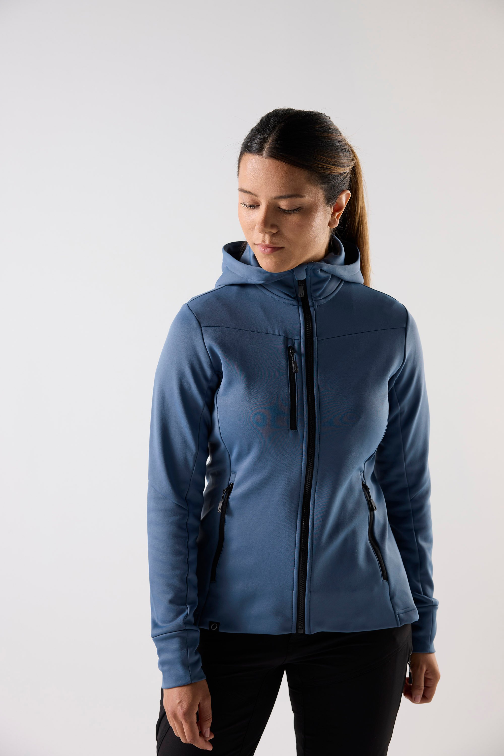 Trace Powerfleece is a technical mid-layer with high functionality. The stretchy material adapts to your movements, making it ideal for everything from outdoor workdays to active everyday adventures. Made from 62% recycled polyester, 33% polyester, and 5% elastane (280 gsm), it offers both comfort and durability. The soft fleece lining provides a cozy feel against the skin, while the GRS-certified recycled polyester makes it a more environmentally conscious choice. The garment features a fixed hood with a protective high collar and wide cuffs. An adjustable drawstring at the hem allows for a customizable fit. You also get three smartly placed zippered pockets – two hand pockets and one chest pocket – for secure storage of your phone, keys, or other small essentials. Trace Powerfleece is the obvious choice when you need an insulating, breathable layer that doesn’t get too warm – whether you’re working actively or on the move in your free time.