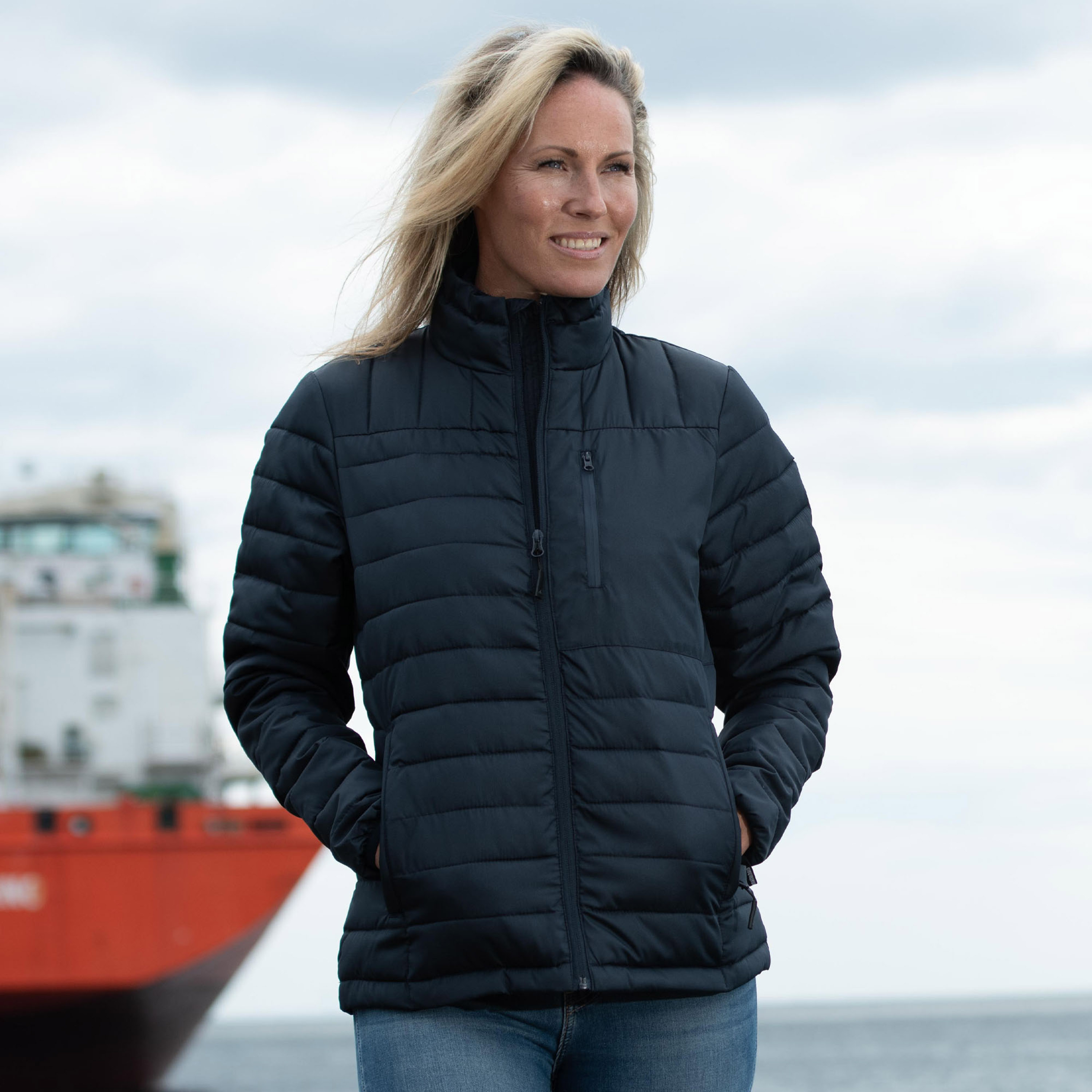 The Haddow Jacket w from Matterhorn is a stylish and durable lightweight women's jacket made from recycled polyester. The modern fit offers a flattering and comfortable feel, perfect for both work and play. The jacket is lightweight but warm, and its eco-friendly construction makes it a responsible choice. With a handy chest pocket, two side pockets and elastic cuffs, you get both functionality and a secure fit that keeps the heat in place. The Haddow Jacket w is the perfect choice for women looking for a durable, functional and stylish jacket that can be used in different contexts.