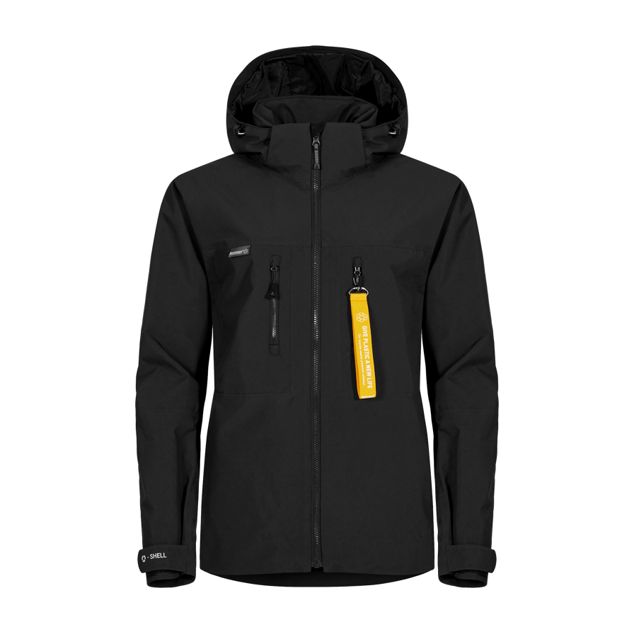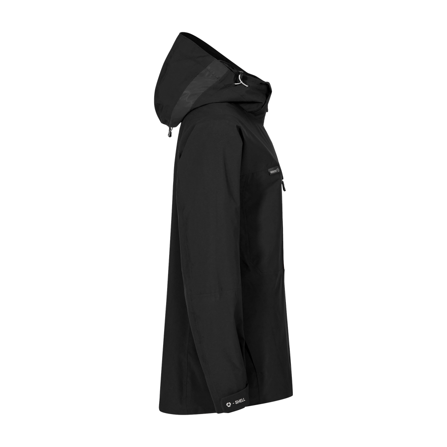 The Habeler Jacket w from Matterhorn is a women's shell jacket, made from recycled polyester with a soft stretch fabric. Wind and waterproof with taped seams, PFC-free finish and removable adjustable hood.