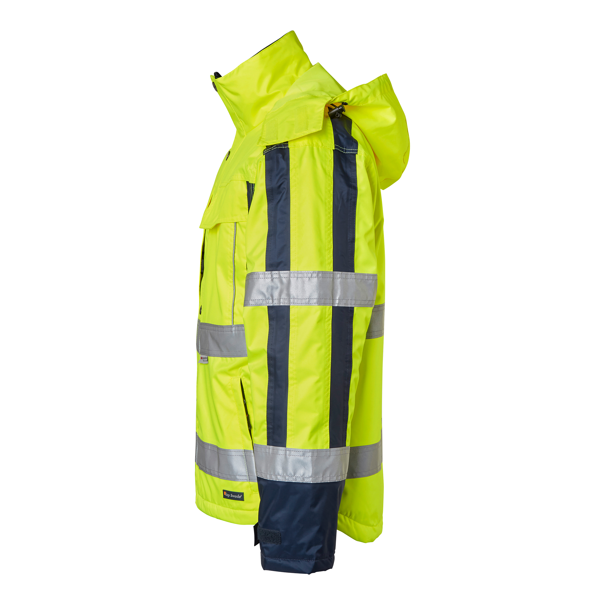 Discover the Top Swedes 163 Jacket, a high-performance winter jacket designed to provide ultimate protection and comfort in tough working environments. This wind and waterproof jacket is equipped with taped seams and an advanced breathability feature that keeps you dry and comfortable whatever the weather. Lined with quilting and fleece in the collar for extra warmth, it has a practical zipper that goes up the collar and an adjustable hood that can be hidden when not in use. With several functional pockets, including two chest pockets with flaps and hidden zippers, napoleon pocket, front pockets and inner pockets, the 163 Jacket offers plenty of storage space. Adjustable Velcro cuffs and drawstring hem ensure a perfect fit. Enhance your working day with this reliable and comfortable winter jacket from Top Swede.