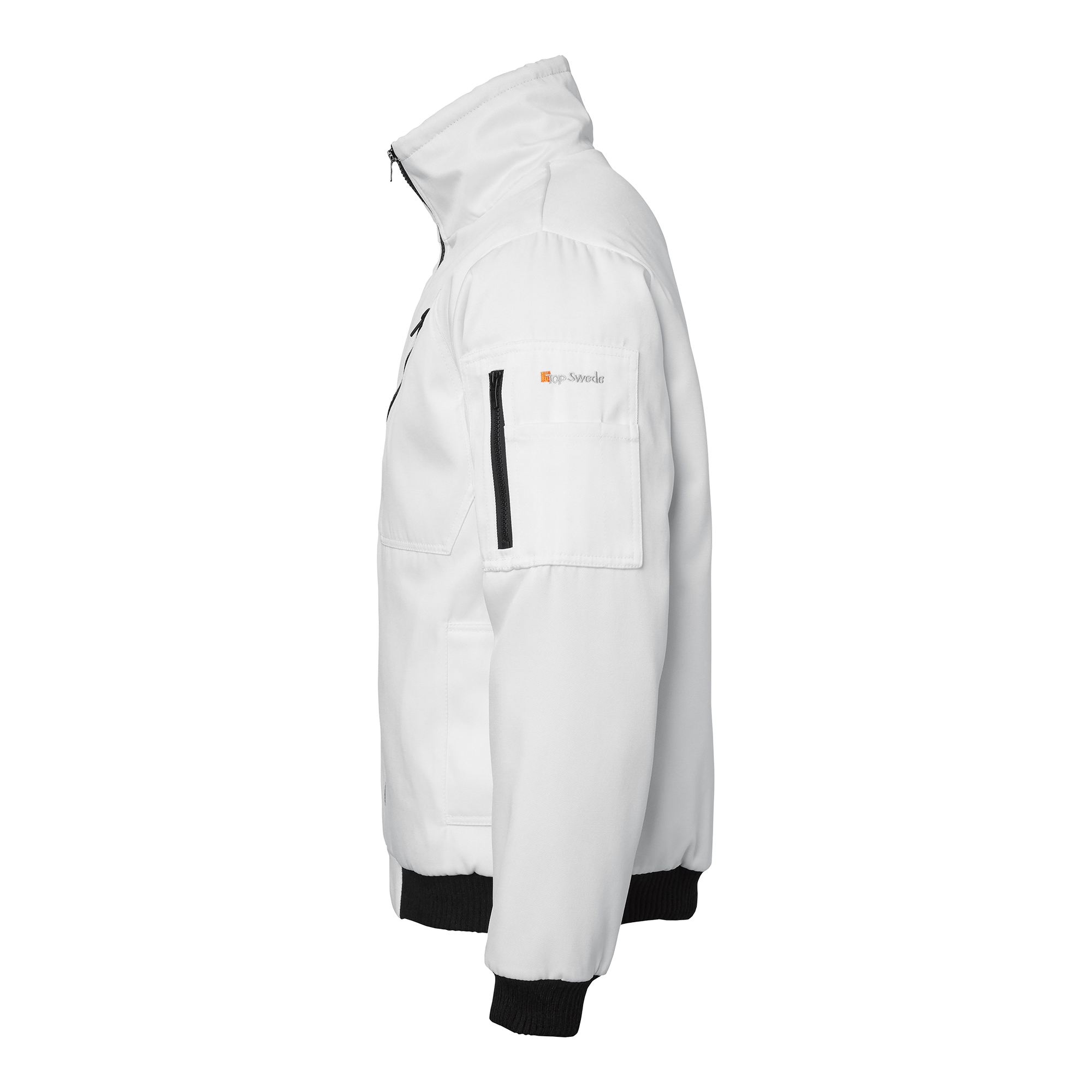 Discover the Top Swedes 5026 Painter's Jacket, a lined pilot's jacket designed for professionals in painting and other craft professions. This jacket is made from a durable polyester and cotton blend, ensuring durability and comfort throughout the working day. The jacket is lined for extra warmth and features two zippered chest pockets, two front pockets, two inside pockets and a zippered sleeve pocket and pen pocket, providing ample storage space for your tools and personal belongings. The cuffs and waist ensure a comfortable and secure fit that keeps the cold out. With its functional design, the 5026 Painter's Jacket is perfect for working in cold environments. Choose this jacket for a combination of functionality, durability and comfort, adapted for demanding working conditions.