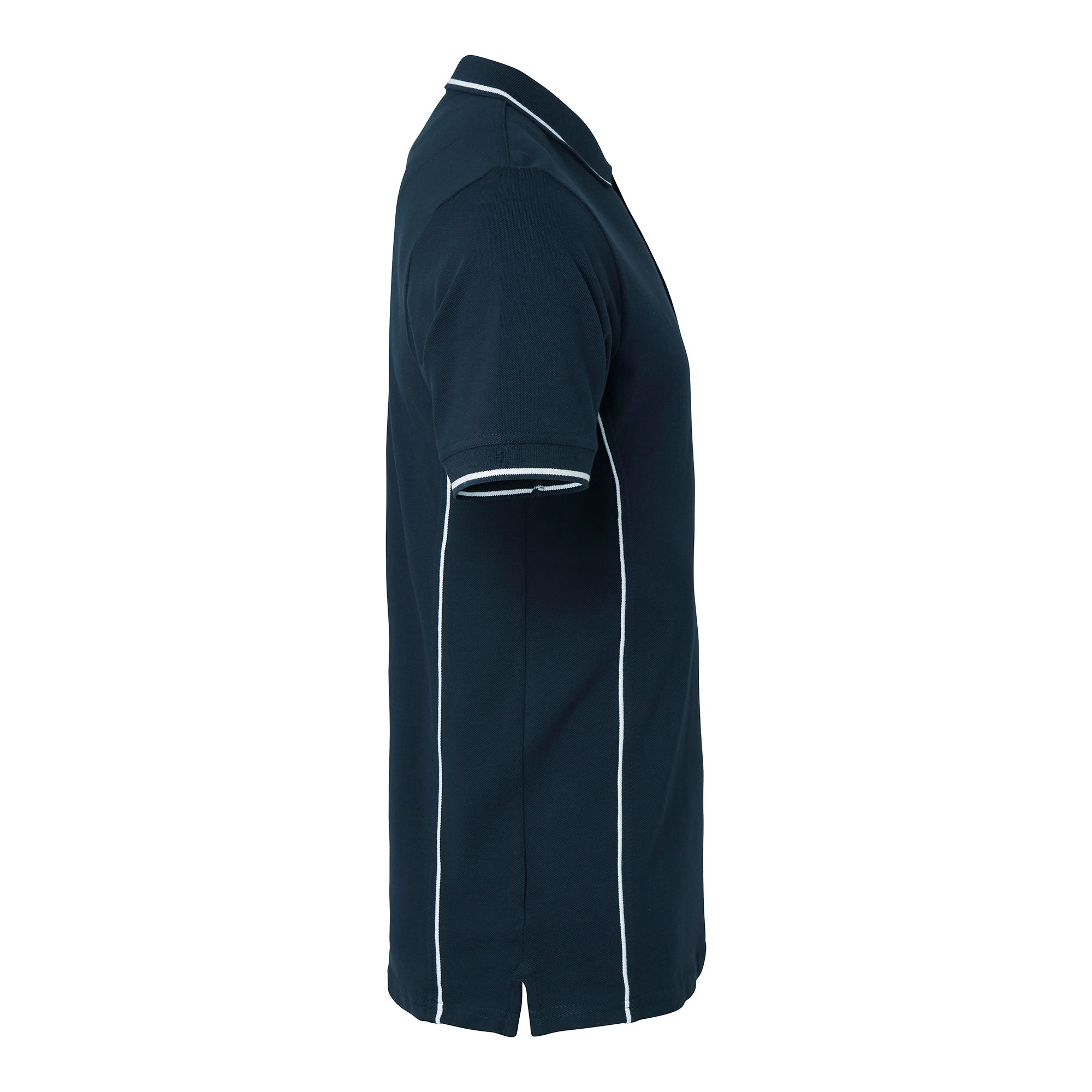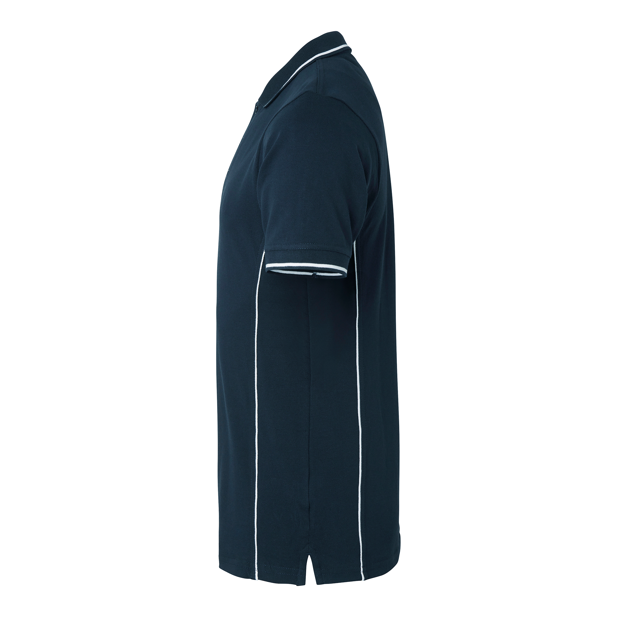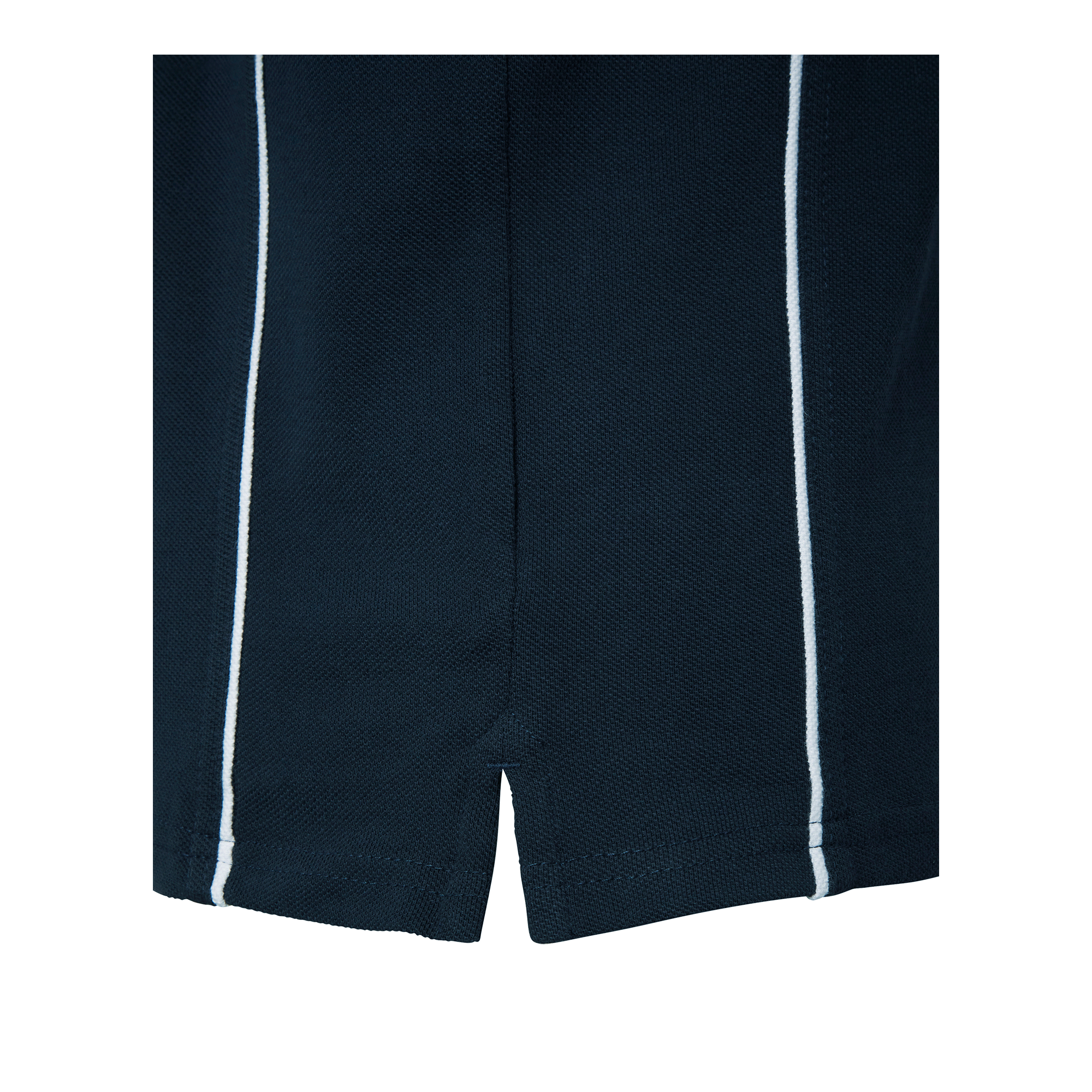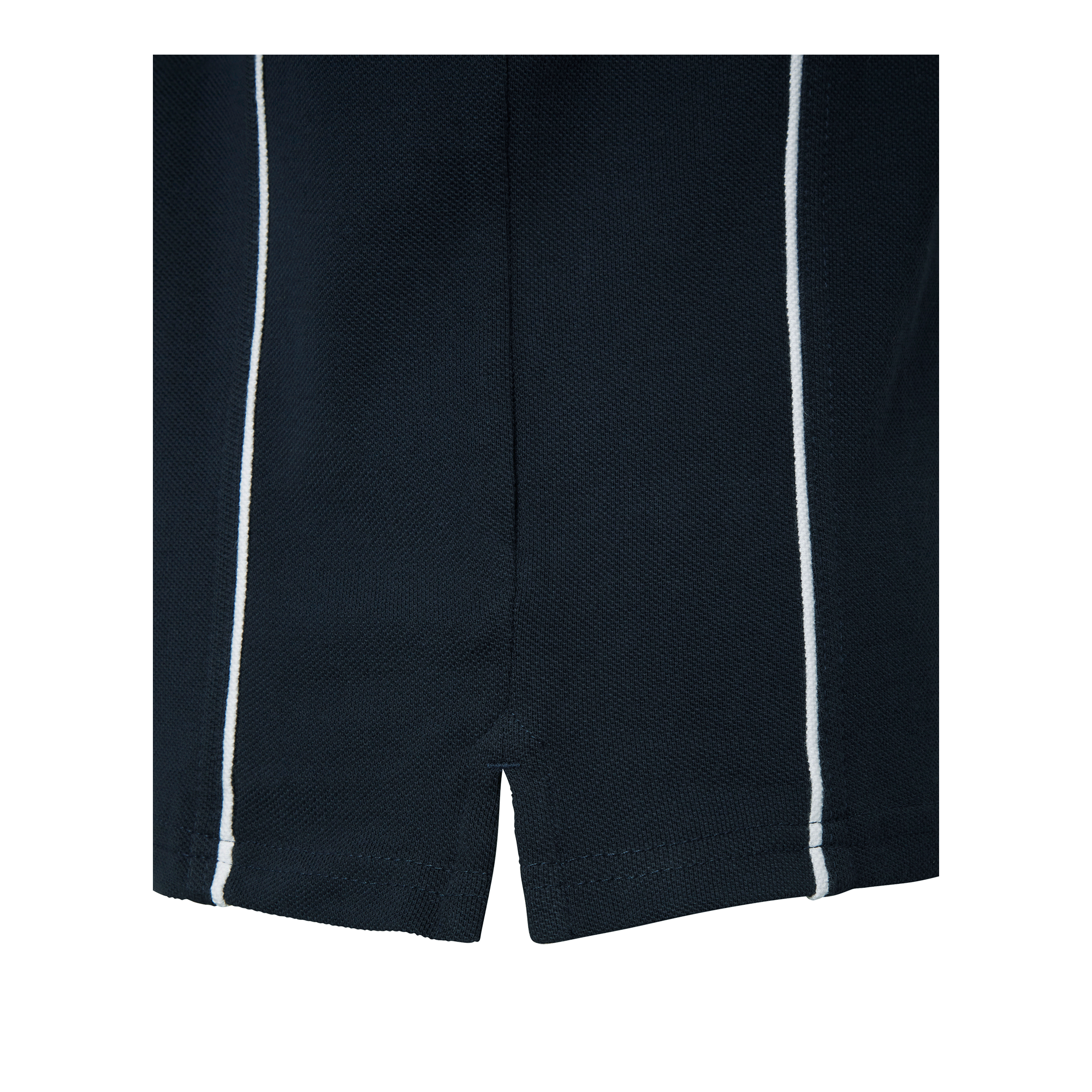 Cotton pique with ribbed collar and contrast piping. Features side slits for extra comfort. Perfect for a stylish and comfortable workday.