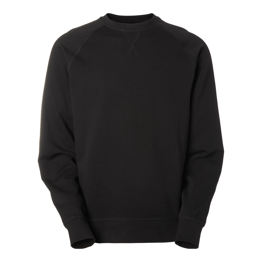 Cotton crew neck sweater with eyelet inside and raglan sleeves. Reinforced flatlock seams and elastane in neck rib for durability. Elaborate fit with elastic cuffs at hem and cuffs.