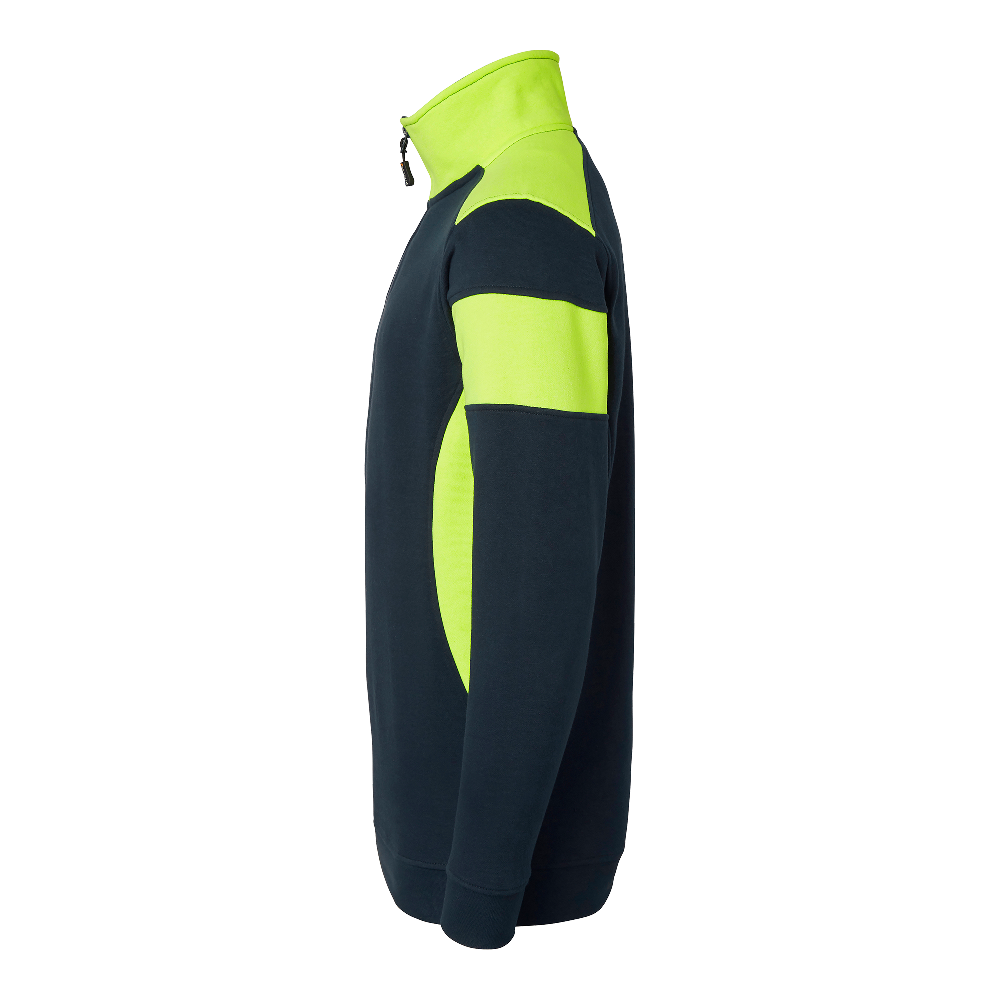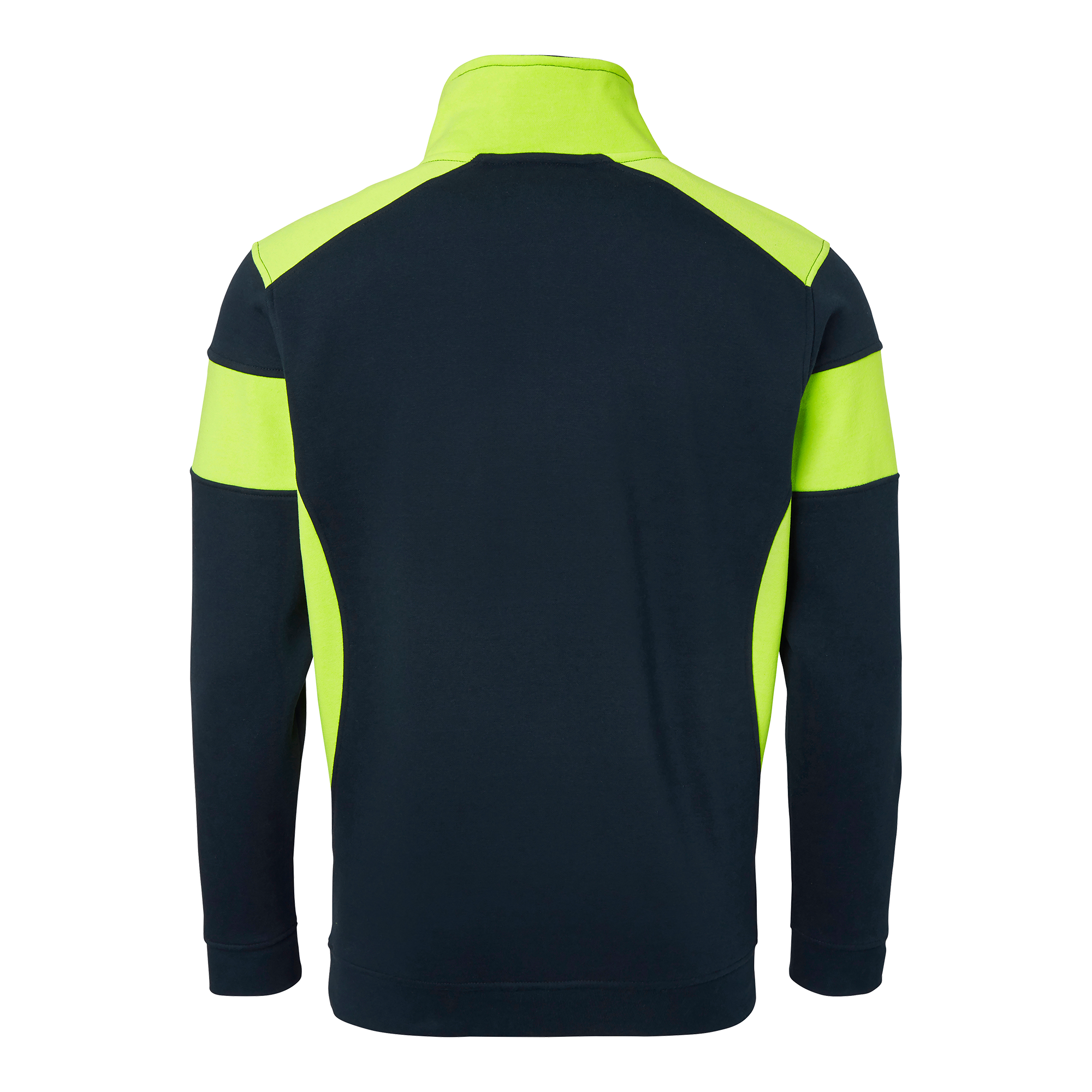 Sweatshirt with increased visibility from Top Swede. Collar with short zipper and cuffs and hem. Made of cotton and polyester for comfort and durability. Ideal for work in construction and industry.