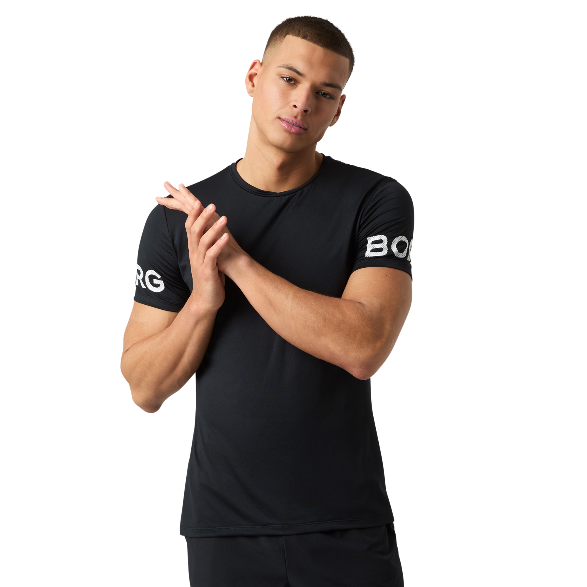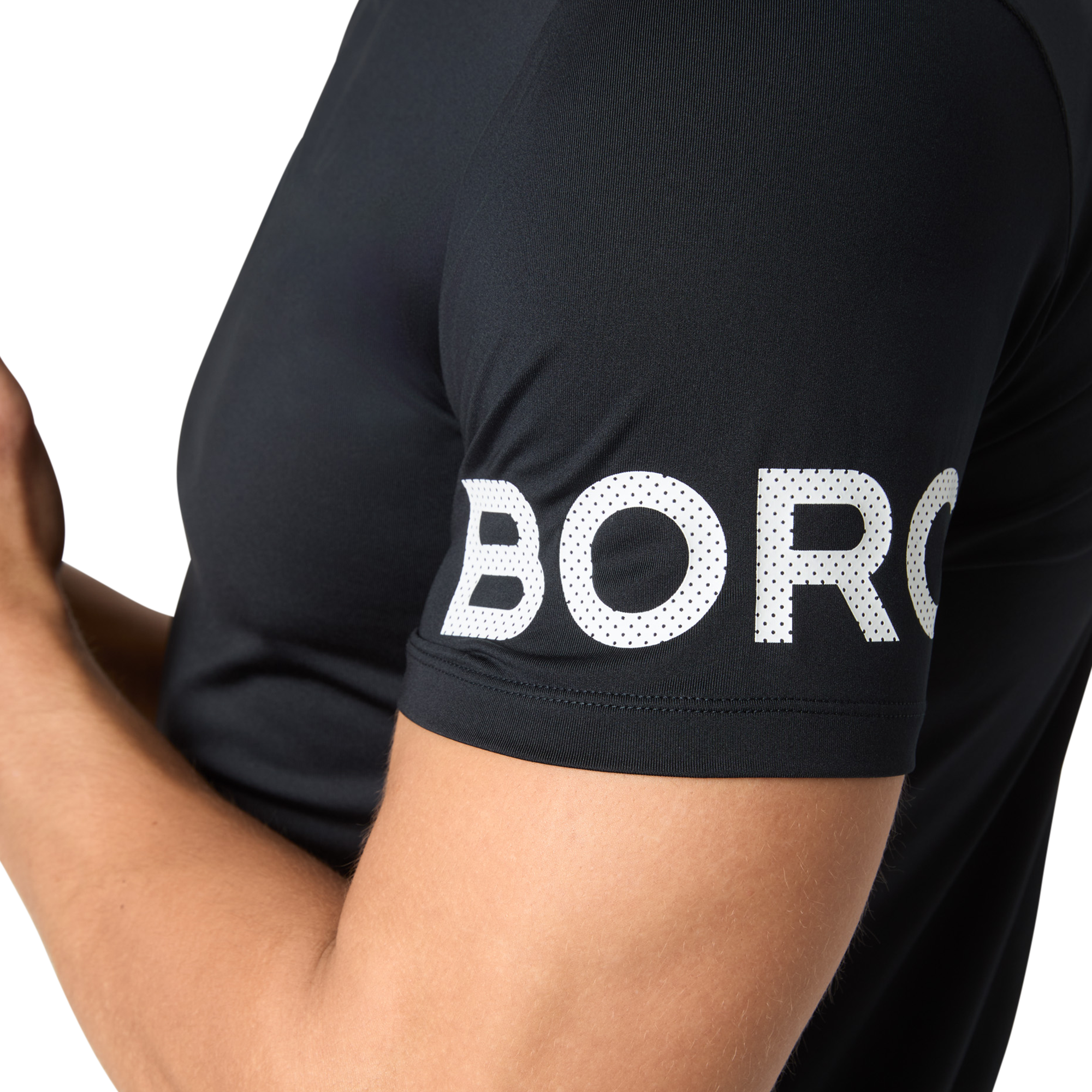 Björn Borg T-Shirt BB Logo is a functional t-shirt that makes training more comfortable. The material in recycled polyester and elastane is thin, soft and stretchy. Made of Hydro Pro material that wicks away moisture. Regular fit with room for movement. Borg print on the sleeves is a nice detail.