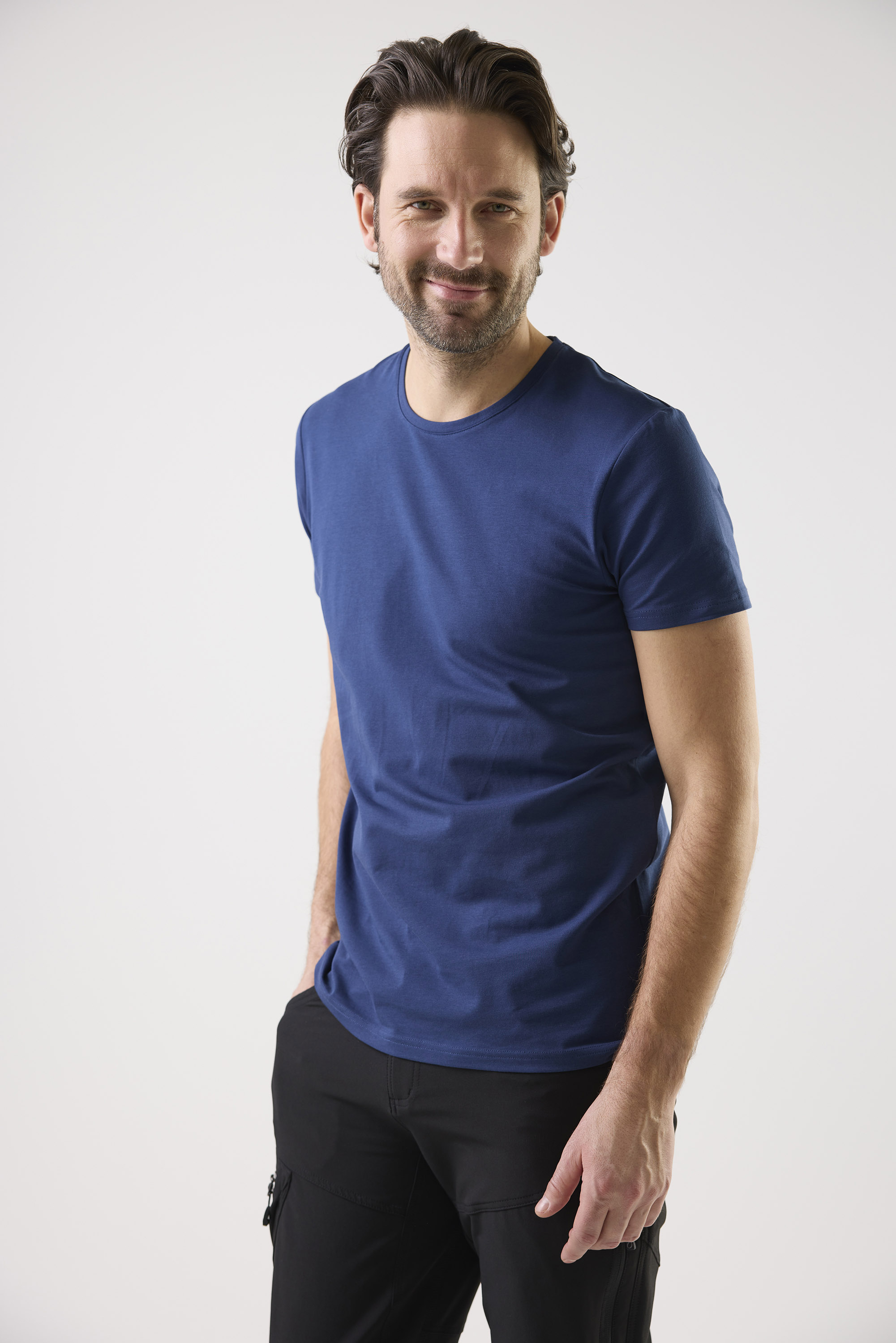 T-shirt in Fairtrade certified cotton with stretch and round neck with narrow ribbed hem. Comfortable fit that combines style and durability for both work and play.
