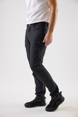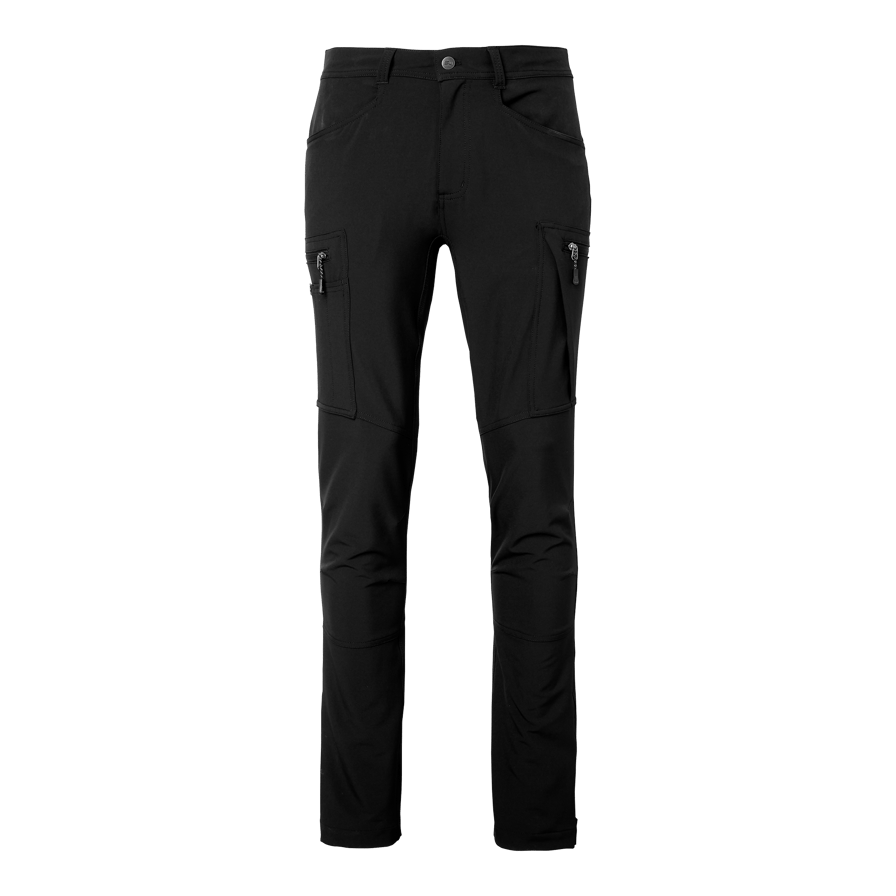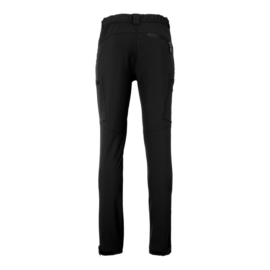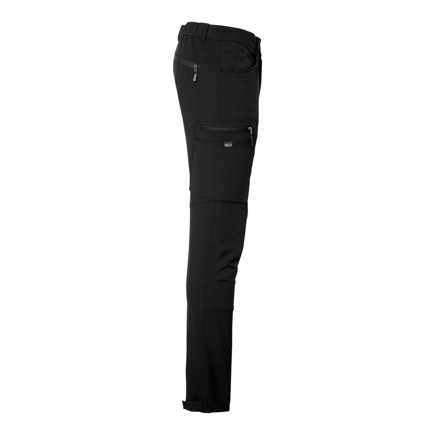 Modern service trousers in recycled polyester and elastane for optimal stretch and comfort. Equipped with several practical pockets, including pen and cell phone pocket. Leg pockets and back pocket with zippers and reflective details. Adjustable leg width with Velcro.
