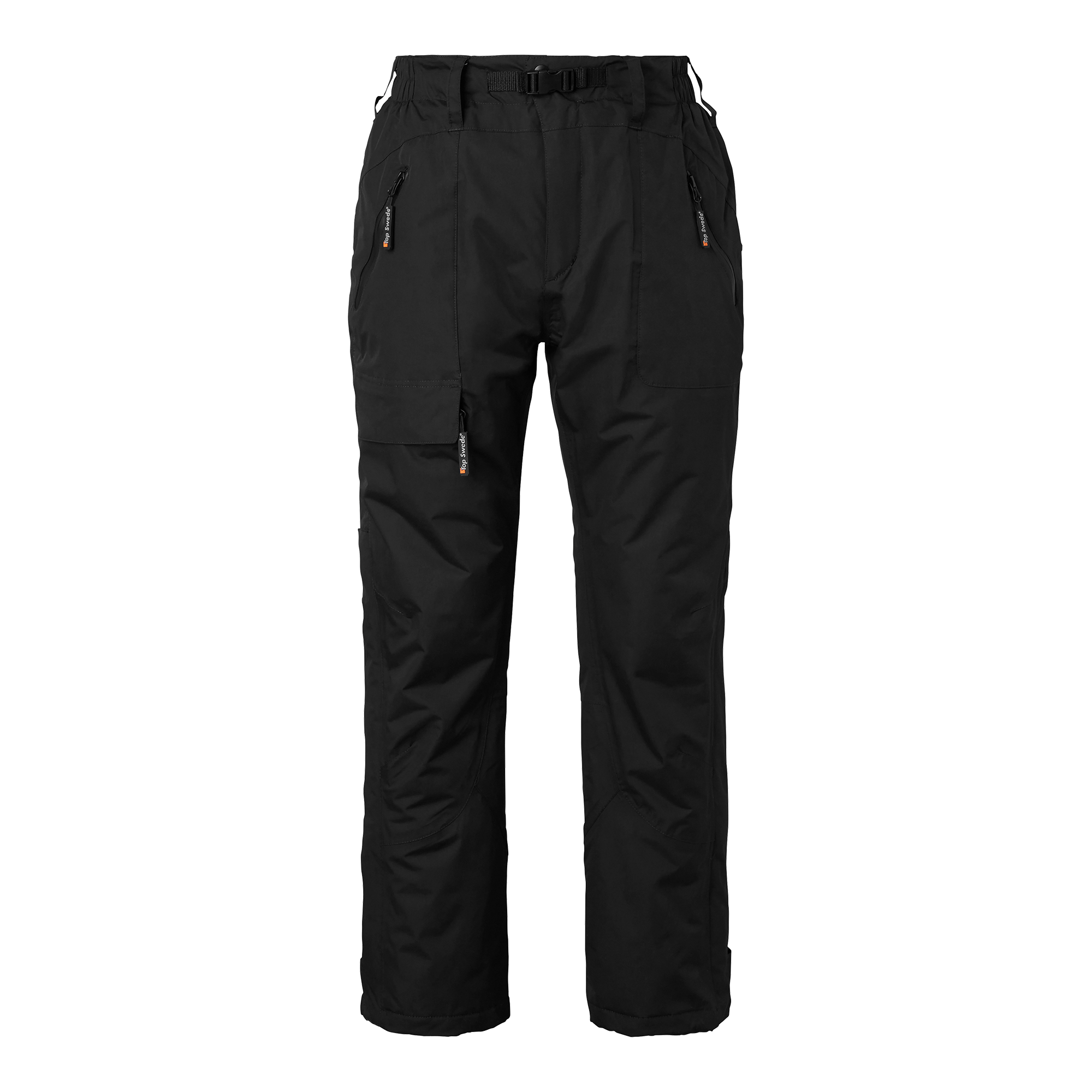 Quilt-lined winter pants that are wind and waterproof with taped seams. Detachable suspenders, two front pockets with waterproof zippers, zippered leg pocket, pre-curved knees and adjustable leg cuffs. Ideal for work in cold environments.