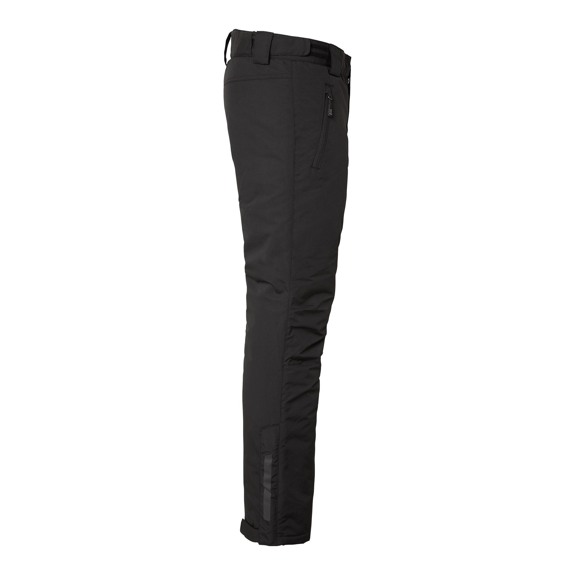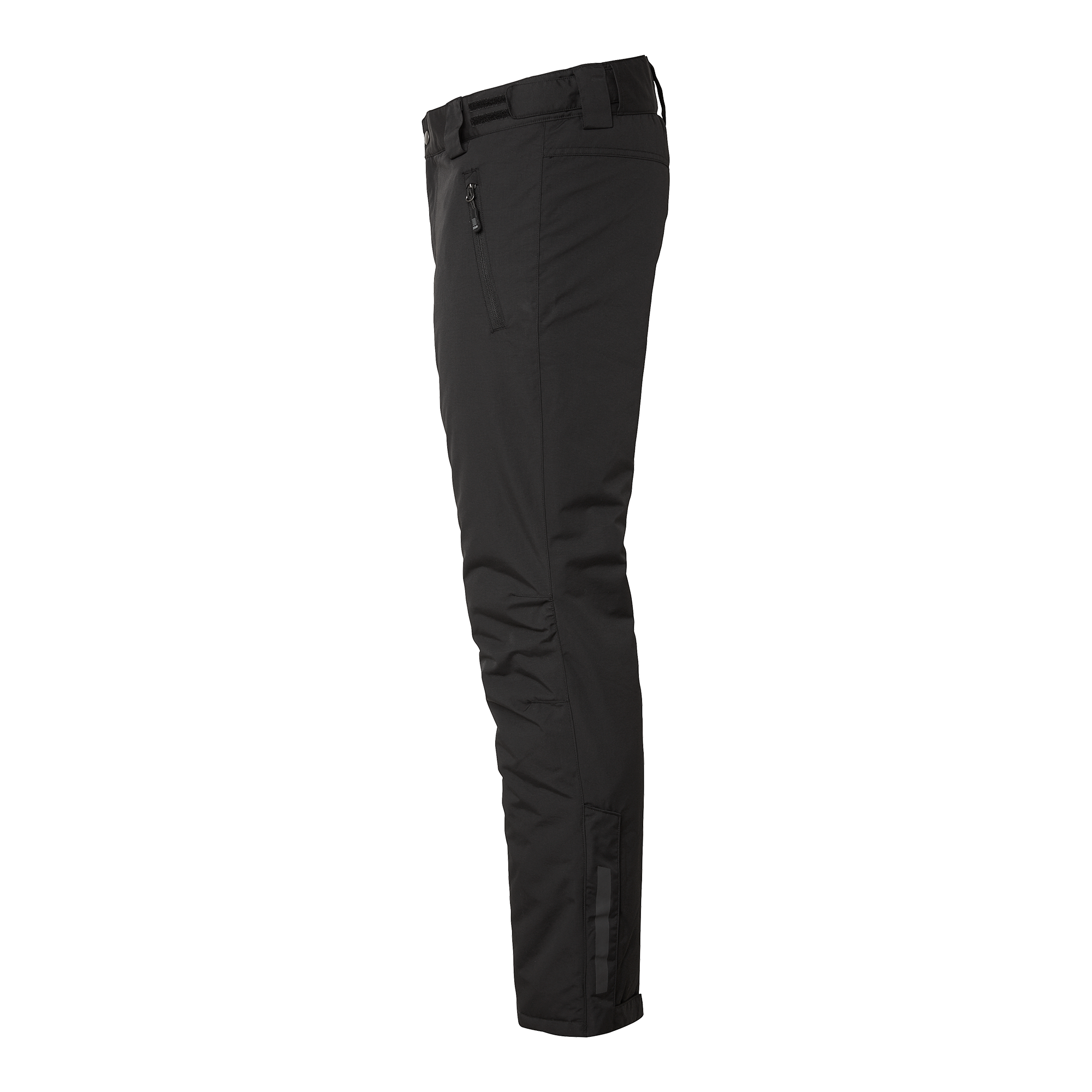 Lightly padded shell trousers with taped seams and reflective details. Wind and water repellent. Durable material with reinforced inside and double layer of fabric at the bottom. Spacious side pockets and adjustable waist.