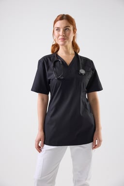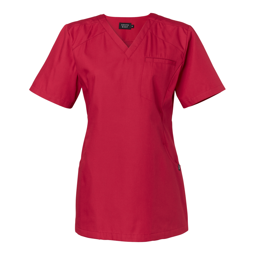 Amie Blouse W is a modern and functional women's blouse specially designed for professionals in health, care, and nursing. With its flattering cut and thoughtful details, it offers both comfort and a professional appearance. The feminine fit is shaped by an elegant V-neckline, princess seams in the front and back, and a gently tapered waist that follows the body’s contours without restricting movement. Practical features make it ideal for a demanding workday: two spacious front pockets – one with an integrated phone pocket and key holder – a chest pocket, and discreet side panels with extra storage. A back slit in the panel enhances mobility further – perfect for active work where every movement counts. Amie Blouse W is part of South West’s healthcare collection, developed to meet the high standards of professionals in caregiving roles. The focus is on durable materials, thoughtful design, and all-day comfort. With Amie, you get a stylish work blouse that combines functionality, freedom of movement, and a polished look – a natural choice for care professionals who want to feel both comfortable and well-dressed.