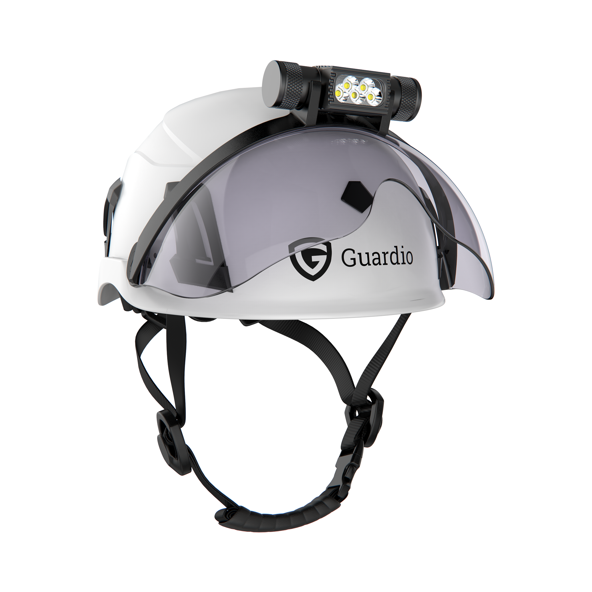 Guardio VisorFlex headlamp with five light modes. Lightweight design, adjustable with helmet visor, long range reach. Battery life sufficient for long work sessions. The headband for the Visorflex lamp is included, which means that the lamp can be used without a helmet.