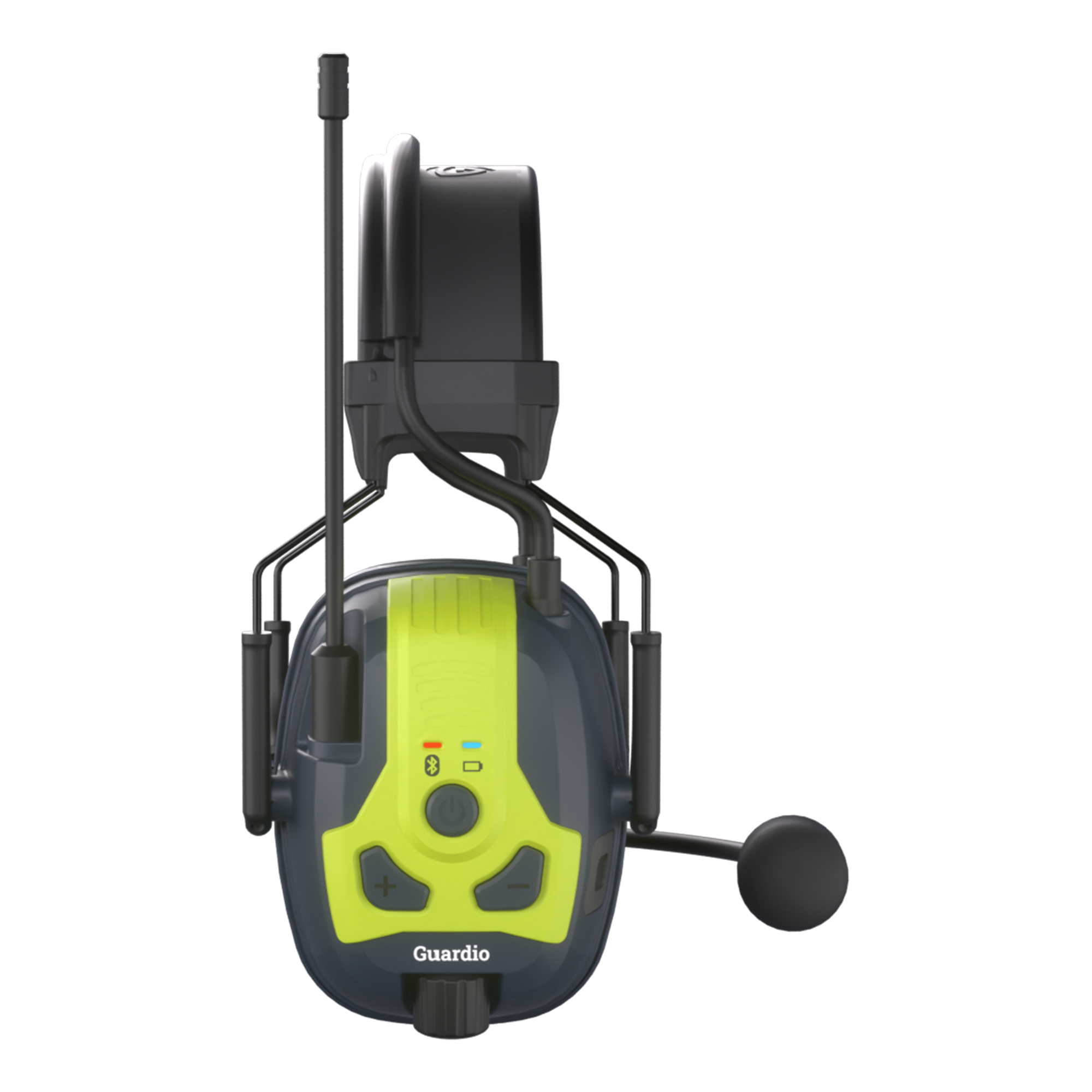Guardio Freebird Pro X with Sound by Harman Kardon is the most advanced hearing protector in the Freebird series – developed for professionals who demand maximum communication, safety and sound quality in one device. Thanks to the collaboration with Harman Kardon, a world-leading audio brand, you get a top-class sound experience – for music, calls and intercom communication. Freebird Pro X is equipped with a built-in combined DMR446 and PMR446 radio offering a total of 16 programmable channels: 8 digital DMR channels and 8 analog PMR channels. This provides a flexible solution adaptable to different workplaces and needs. All channel selections, audio settings and intercom functions are easily managed via the Guardio Connect app. With the intelligent Sonunex VoxSense technology, the microphone is automatically activated during conversation – through an AI algorithm that identifies the human voice. You no longer need to press the PTT button and can work more efficiently. The boom microphone with built-in sidetone ensures clear communication even in noise levels up to 115 dB. Thanks to sidetone, the user hears their own voice, helping to maintain proper voice volume, confirm the microphone is working, and reduce fatigue during long conversations. With Bluetooth multipoint, two phones can be connected simultaneously, and the powerful battery delivers up to 120 hours of music or 18 hours of intercom talk time. With fast charging, you are quickly back to work. Freebird Pro X has a flexible design for both helmet mount and headband, and is tested and approved together with several leading helmet brands. The package includes charger, headband, helmet mount and storage bag – everything you need for a complete solution. Guardio Freebird Pro X with Sound by Harman Kardon – the most advanced choice for construction and industry professionals who want the best in hearing protection, digital communication and sound quality.