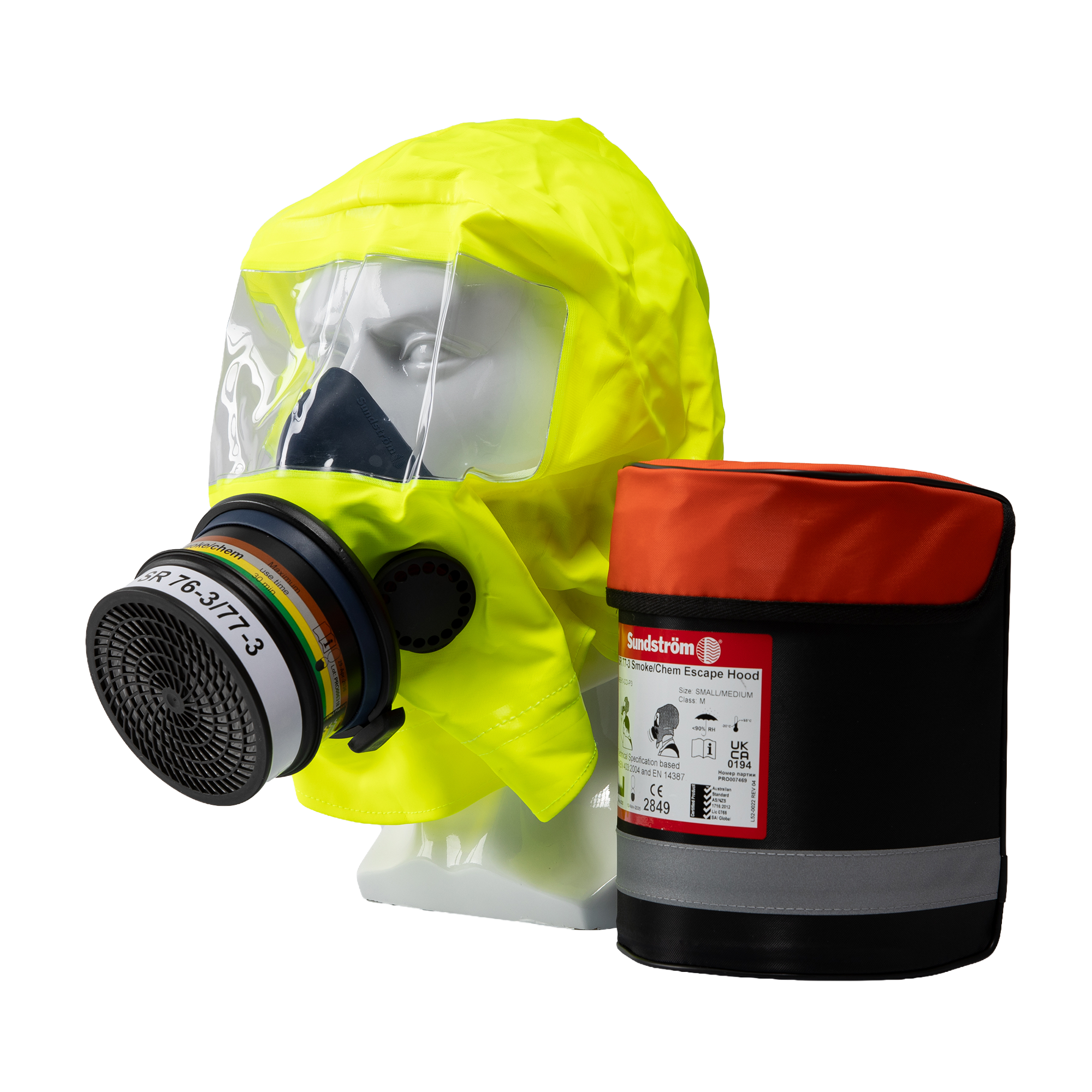 Your Lifesaver in Emergencies. Sundström Safety's reliable Escape Hood provides perfect fit and high comfort, no adjustments needed. Available in two sizes for adults and teenagers. Low resistance valves and filters minimize strain in challenging environments. Durable aluminum bag for stationary or mobile use. Carefree use for 10 years, no maintenance. Note: For escape in oxygen-rich environments only. Breathe easy, stay safe.