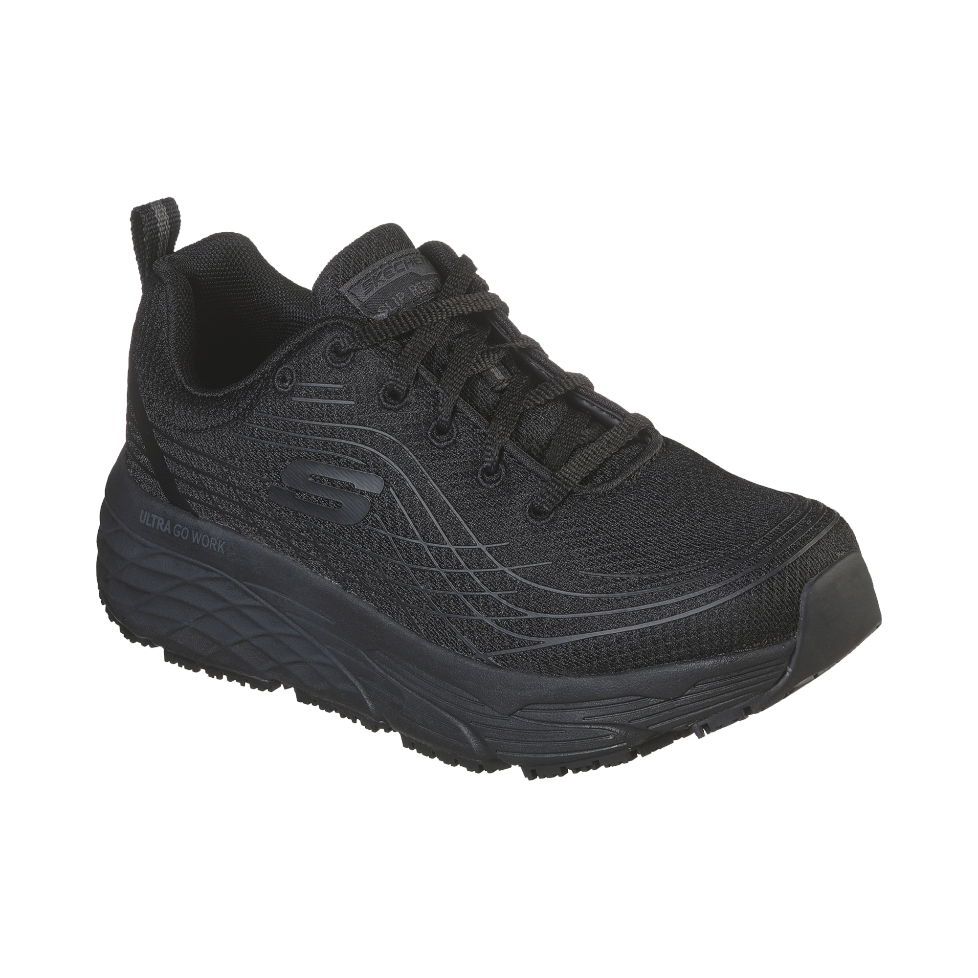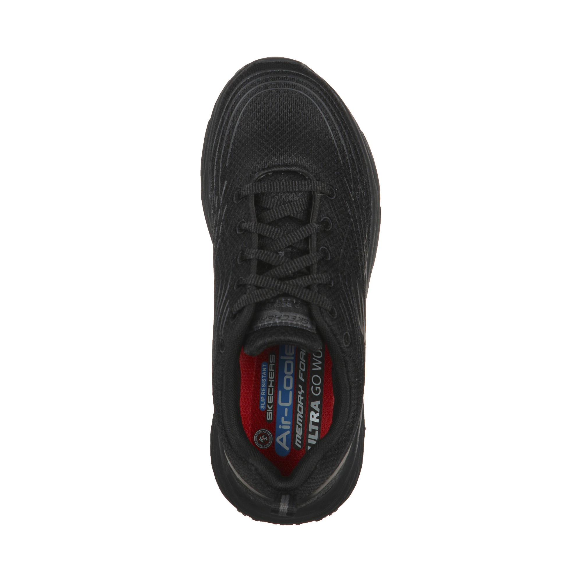 The Max Cushioning Work Shoe has a mesh upper and black details. Skechers Air cooled Memory Foam insole provides good cushioning. Max cushioning midsole is designed for best comfort and a non-slip outsole makes this a great work shoe.