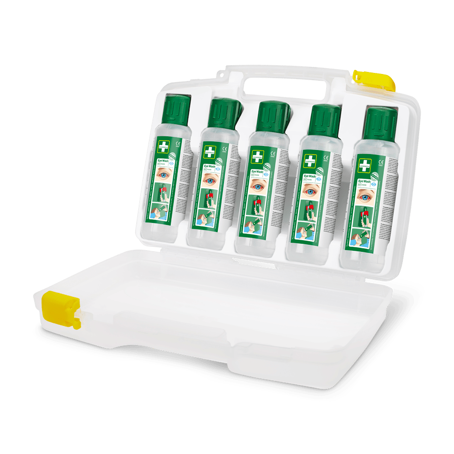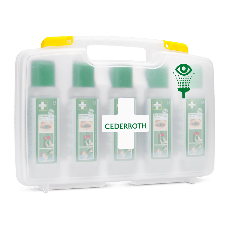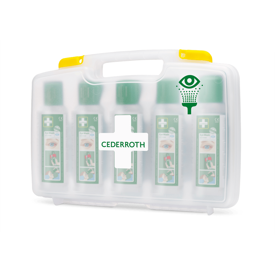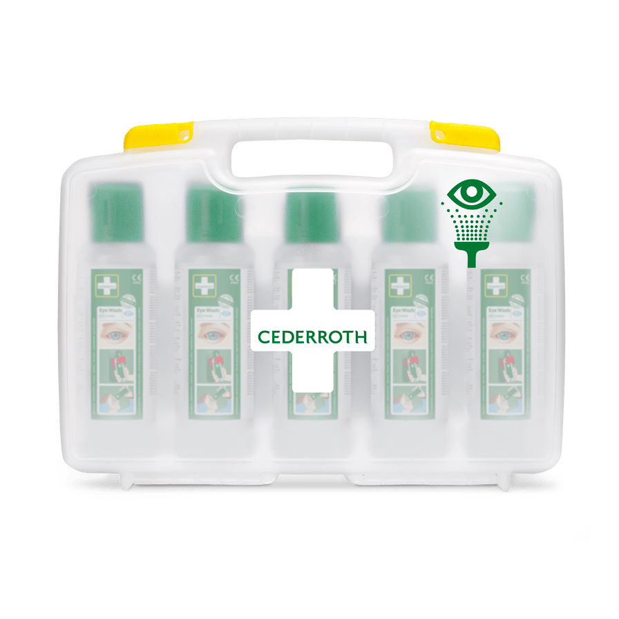 Cederroth Silmänhuuhtelupullot (5 x 500ml) pakissa. Käytännöllinen kuljettaa mukanasi, esimerkiksi työskennellessäsi liikkeellä tai sairaalakuljetuksen aikana. Kestävä läpinäkyvä kova pakki, jossa on kahva. Helppo avata keltaisilla tukevilla soljilla, jotka liukuvat sivusuunnassa. Voidaan ripustaa seinälle seinätelineellä (REF 51011041). Sisältö: 5 kpl Cederroth Silmänhuuhtelupulloja (REF 725200)