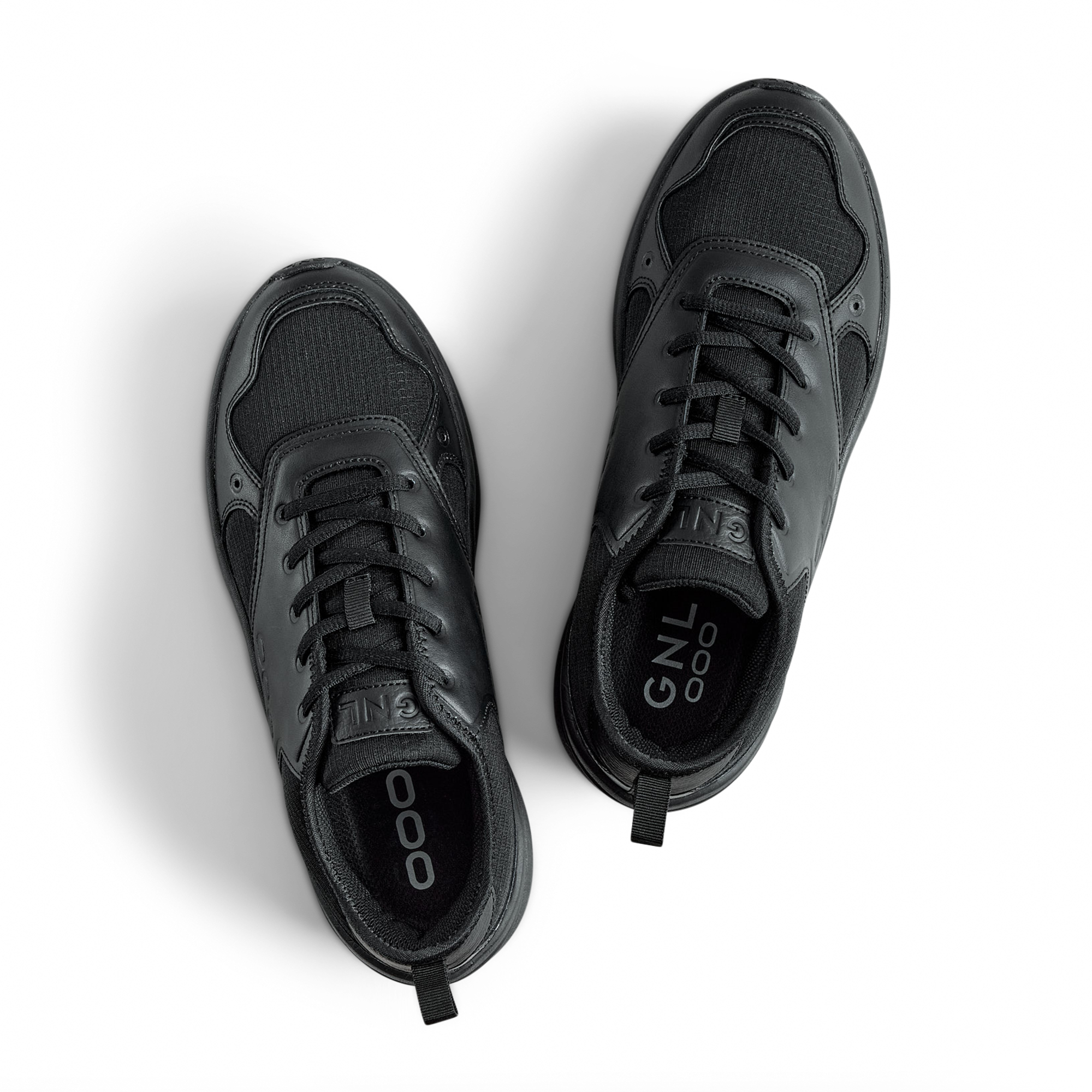 Tutustu GNL:n Office Walk -kenkiin, monipuolisiin työ- ja vapaa-ajan kenkiin, joissa on kehittynyt 360° Walk -teknologia. Kengässä on nahkainen ja 3D-verkkopäällinen, joka on suunniteltu tarjoamaan mukavuutta, tukea ja tyyliä. Varustettu vaihdettavalla PU-vaahtomuovipohjalla ja kierrätyskumipohjaisella ulkopohjalla. Sopii täydellisesti toimistoon, business casual -tyyliin ja muihin vapaa-ajan aktiviteetteihin.