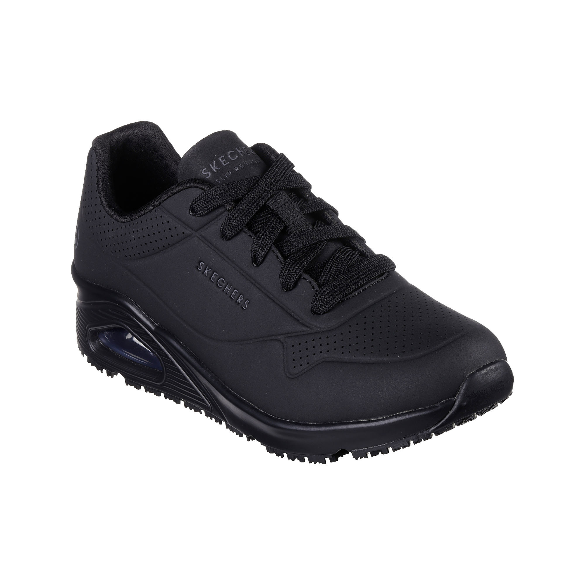 Skechersin luistamaton malli, jossa on Skech-Air, näkyvä pehmustava ilmatyyny. Mattapintaisessasynteettisessä päällisessä on kohokuvioidut detaljit ja mukava verkkovuori. Air Cooled MemoryFoam ‑sisäpohja. Kenkä on ESD-hyväksytty ja ulkopohja on öljynkestävä ja luistamaton.EN ISO 20347:2012 01 FO SRC ESD