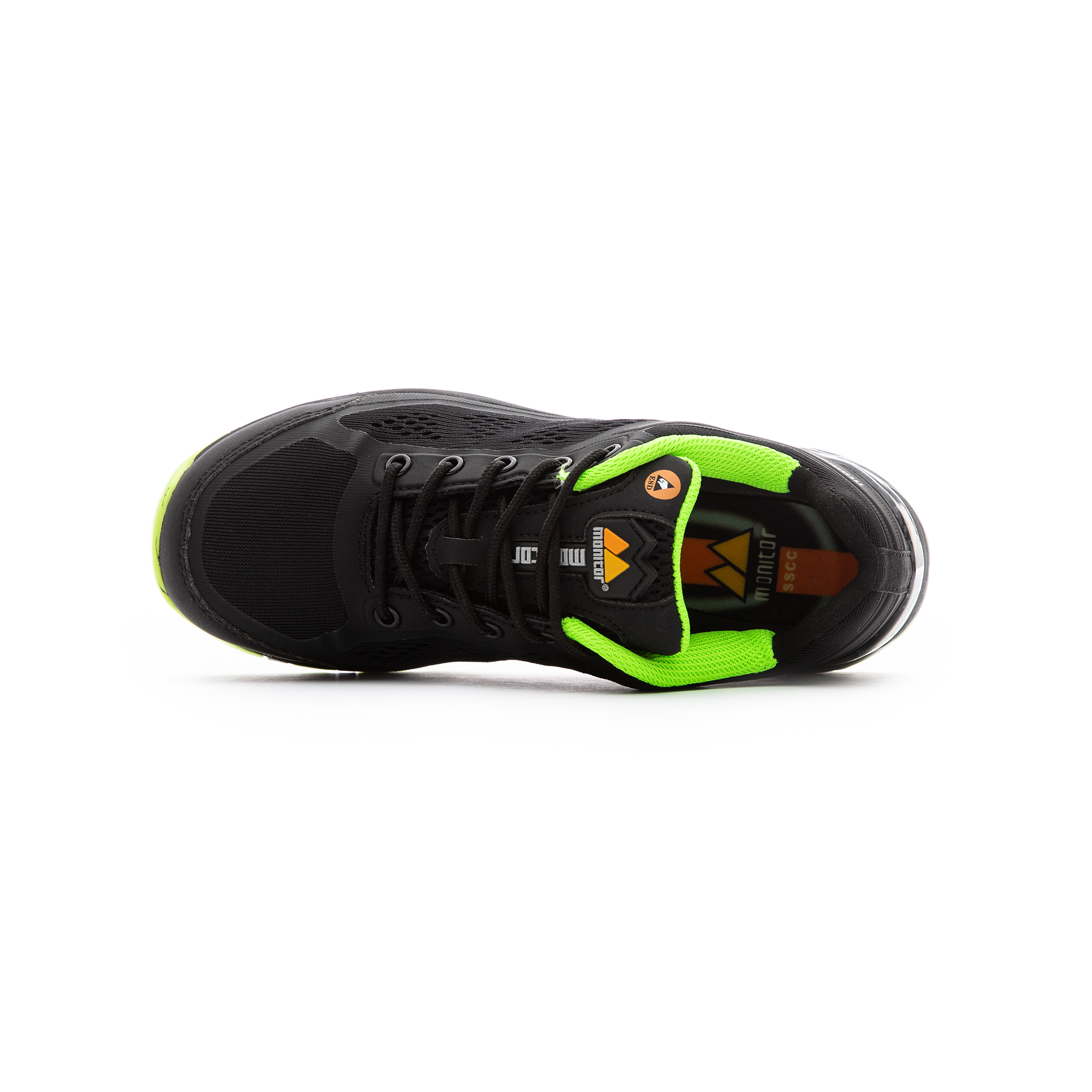 Monitor Navajo Safety Shoe on naisten turvakenkä, jossa on mikrokuitupäällinen ja joustava turvakärki. Kengässä on alumiininen turvakärki, pehmustava EVA-välipohja ja kuminen ulkopohja. Varustettu Monitorin SSCC-memory foam pohjallisella ja ESD-suojauksella.