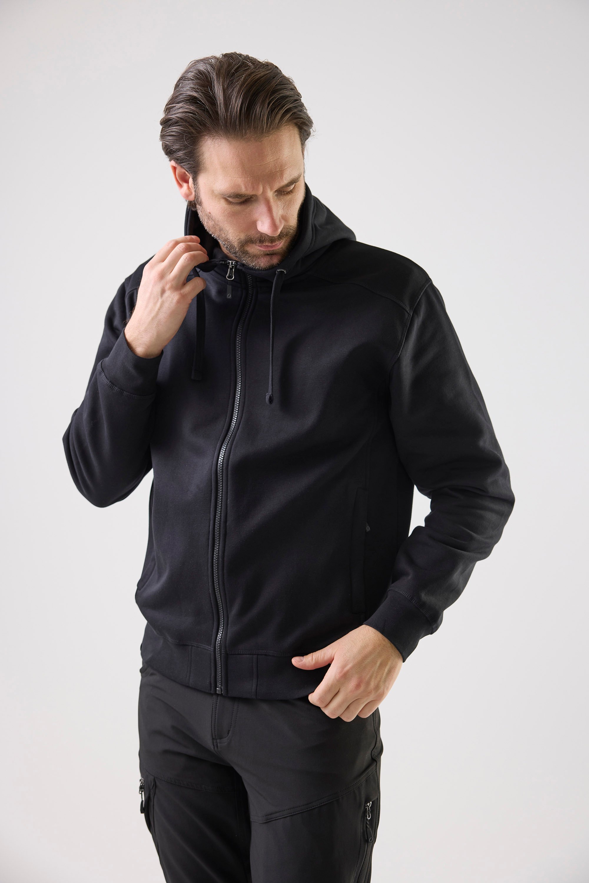 Collegetakki, jossa on harjattu sisäpinta, tehosteväriset sivupaneelit ja kaksi tilavaa vetoketjullista etutaskua. Korkeakauluksellisen hupun muotoa voi säätää nyörillä. Joustavat hihansuut ja helma. Näkyvyyttä parantavia fluoresoivia värivaihtoehtoja.