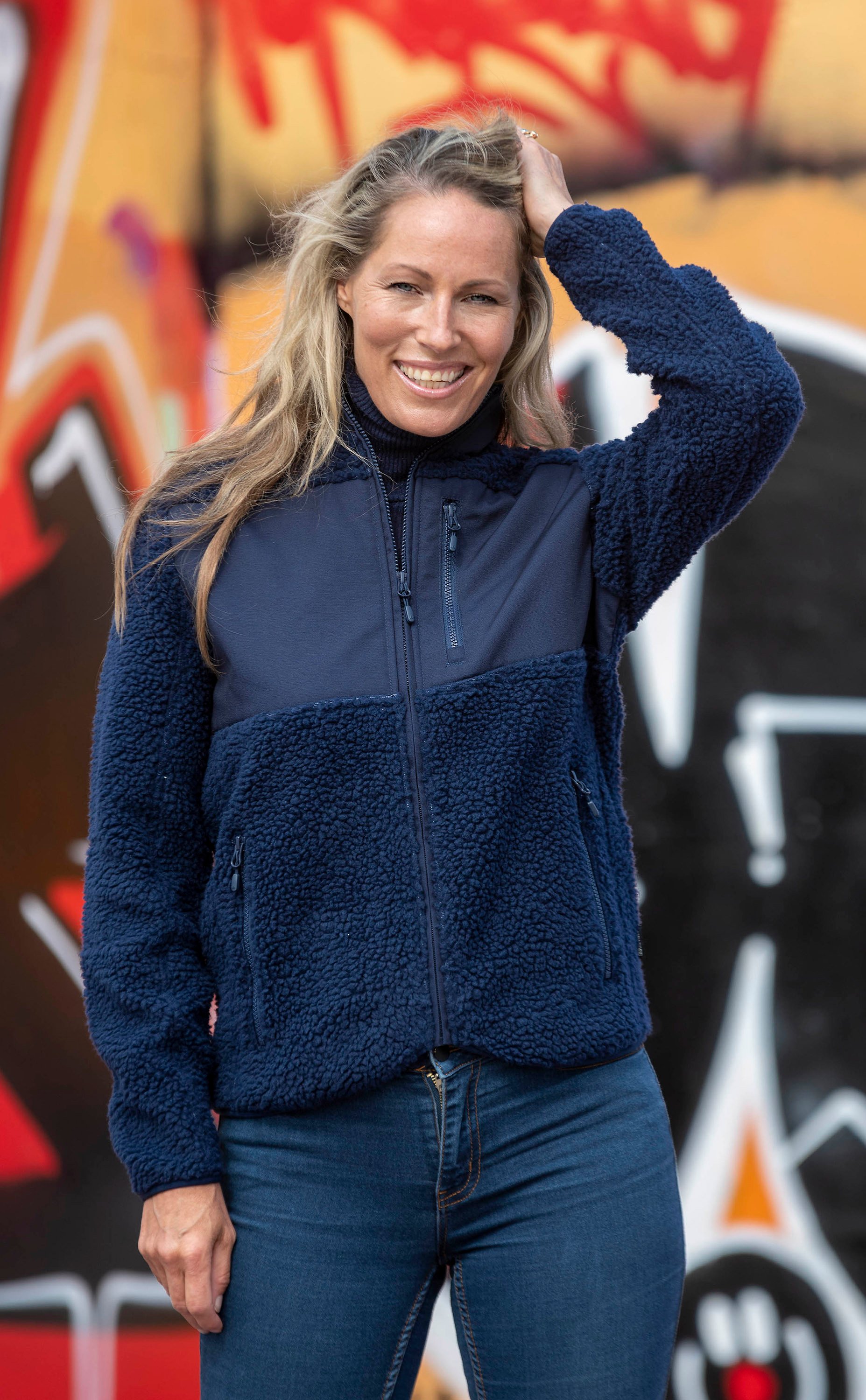 Sherpafleeceliivi kierrätettyä polyesteriä. Edessä polyesteri- ja puuvillakangasta. Kaksi sivutaskua, rintatasku ja joustavat hihansuut.