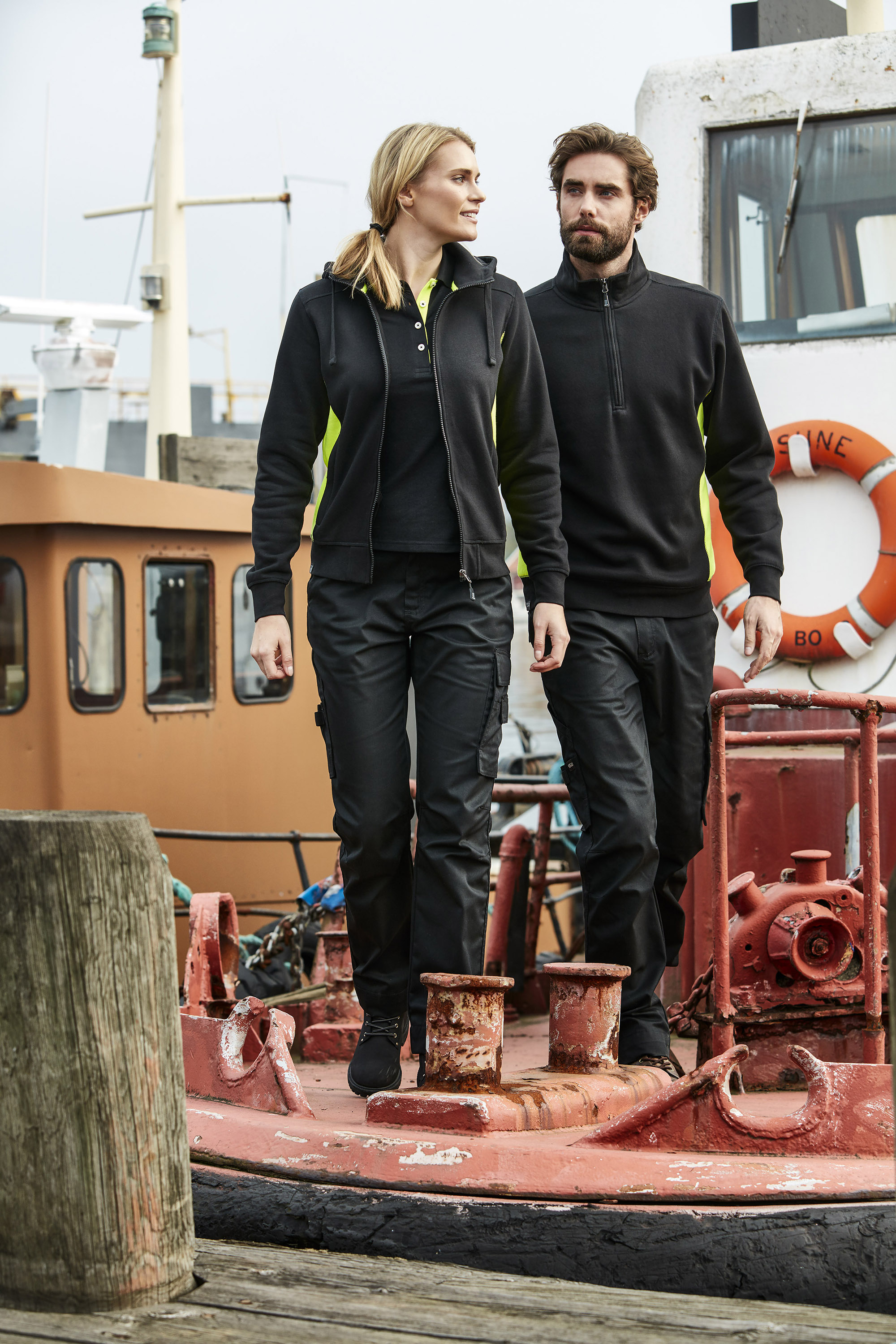 Työhousut kestävästä materiaalista, jossa on mekaaninen jousto, sopivat moniin ammatteihin. Varustettu tilavilla taskuilla, viivoitintasku ja reisitasku, jossa on matkapuhelintasku. 5 cm:n pidennysmahdollisuus lahkeensuissa.