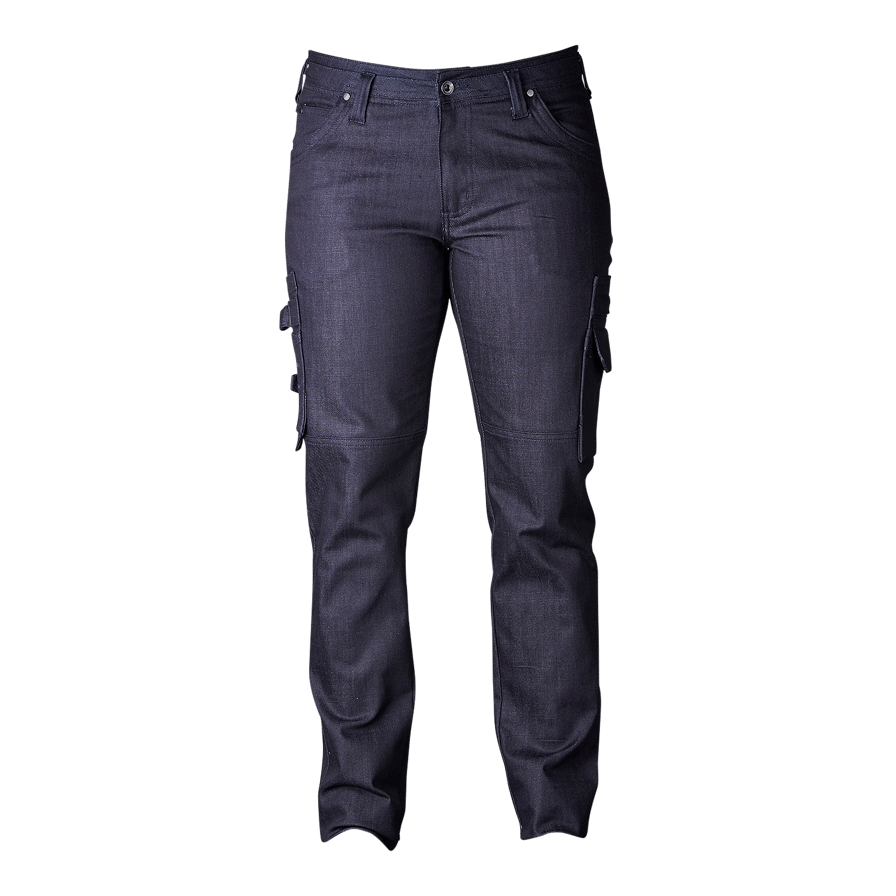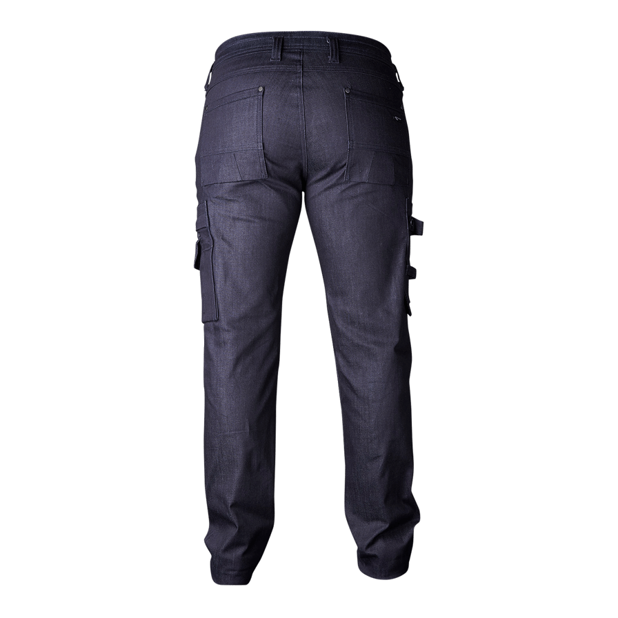Kaksi etutaskua. Kaksi takataskua. Kaksi reisitaskua, yksi mittatasku. Puhelintasku. Kynäpidike. Muotoonommellut lahkeet.