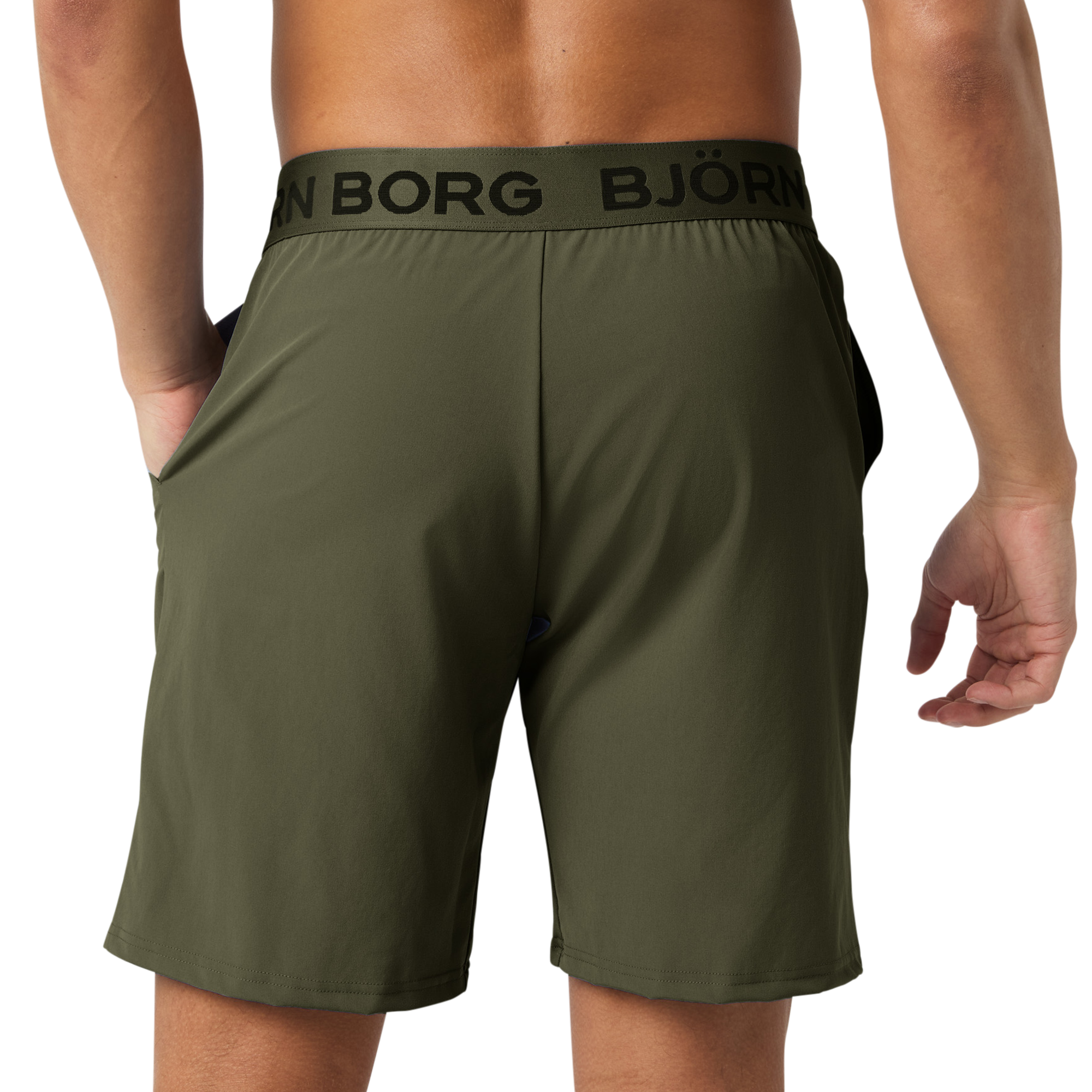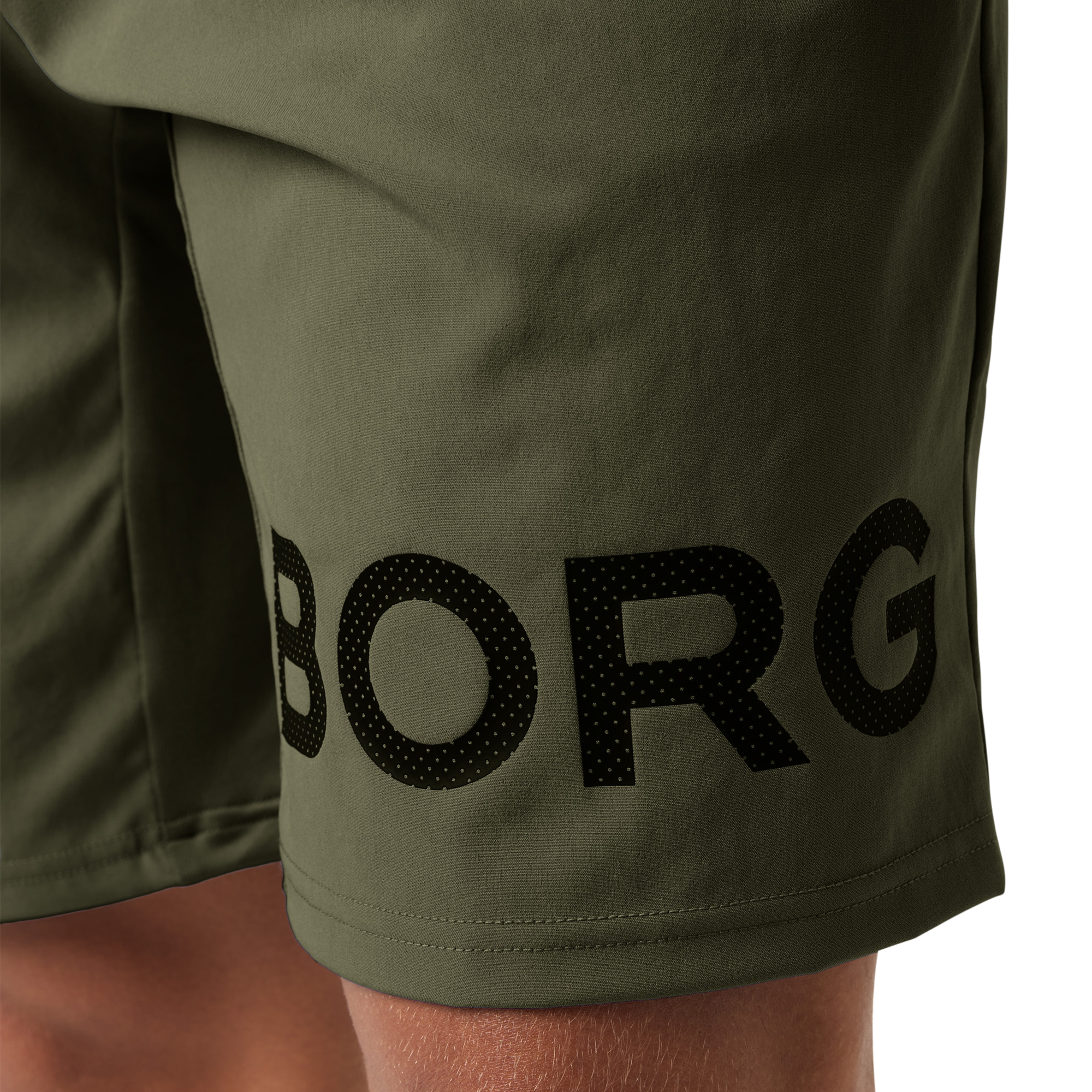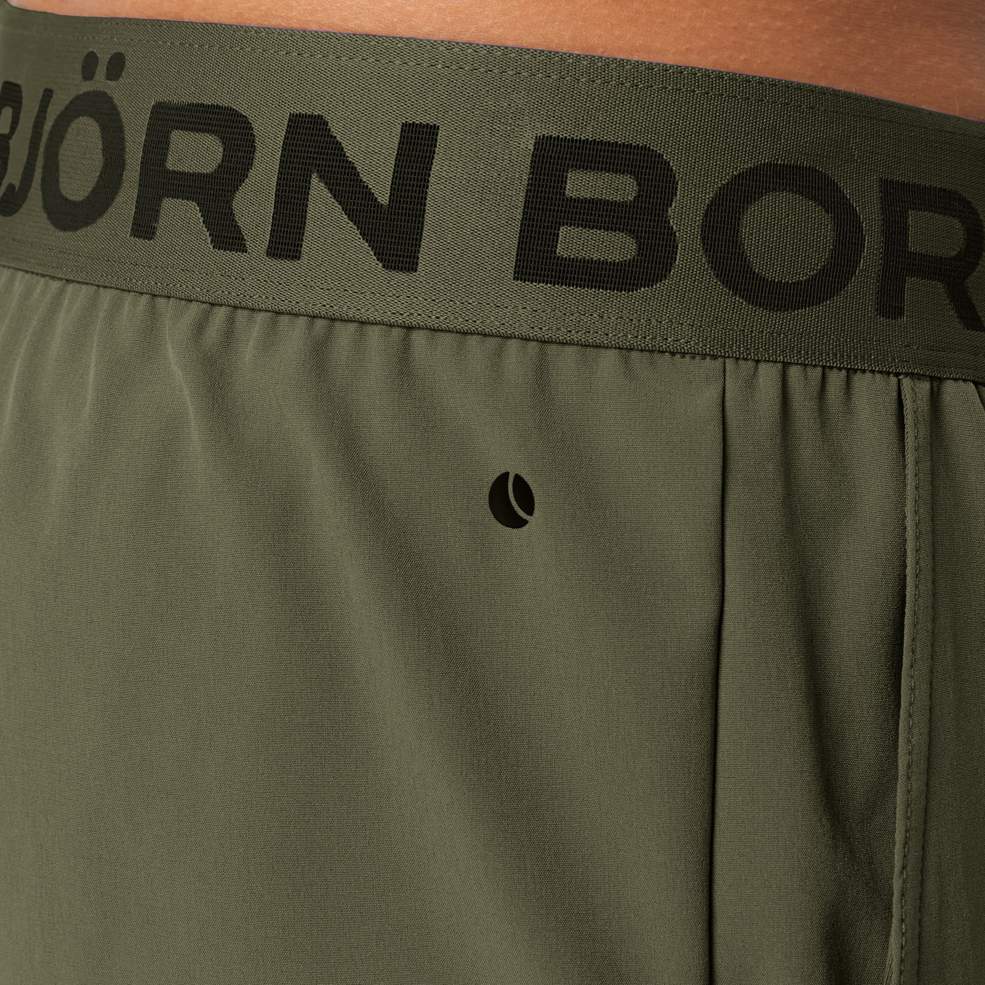Shorts BB Logo Björn Borgilta ovat mukavat treenishortsit erilaisiin liikuntatyyppeihin. Materiaali on kierrätettyä polyesteriä ja elastaania, ja lahkeiden sisäpuolella on joustava trikoo. Ne on valmistettu nopeasti kuivuvasta Hydro Pro -materiaalista, joka siirtää kosteutta pois. Yläosassa on joustava kuminauha Borg-painatuksella, ja istuvuus on normaali. Vyötäröä voi säätää kiristysnauhalla, ja sivutaskut sekä avaintasku vyötärön sisäpuolella ovat fiksuja yksityiskohtia.