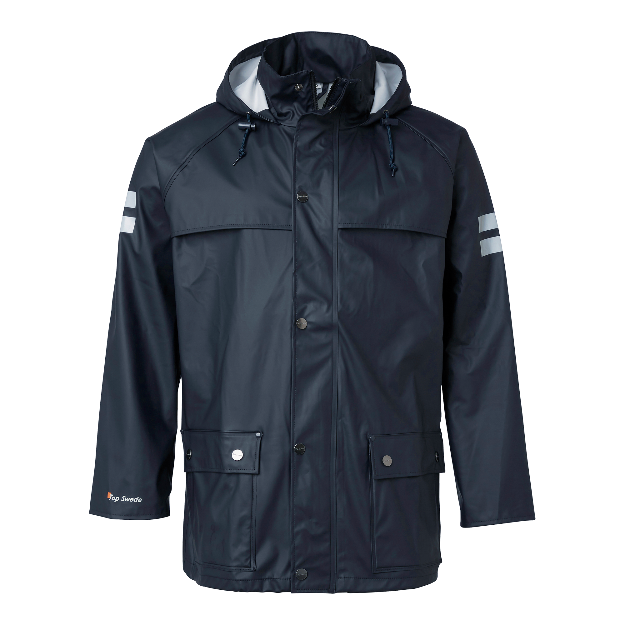 Top Swede 9195 -sadetakki on 80 cm pitkä, kestävä ja luotettava valinta rakennus- ja teollisuusalan ammattilaisille, jotka tarvitsevat suojaa rankkasateilta ja haastavilta työolosuhteilta. Takki on valmistettu sileästä ja joustavasta stretch-materiaalista, ja sen hitsatut saumat takaavat täydellisen vedenpitävyyden ja kestävyyden pitkäkestoiseen käyttöön. Takissa on kaksi läpällistä etutaskua turvalliseen säilytykseen, vetoketju, joka on suojattu läpällä ja painonapeilla, sekä kiristysnauhalla varustettu huppu tuoden varman istuvuuden ja suojaa sateelta. Säädettävät hihansuut lisäävät käyttömukavuutta ja varmistavat, että takki istuu tiiviisti estäen veden pääsyn sisään. 9195-sadetakki on täydellinen yhdistelmä toiminnallisuutta, kestävyyttä ja mukavuutta, tehden siitä erinomaisen valinnan märkiin ja vaativiin työympäristöihin. Tämä takki tarjoaa varmaa suojaa, mikä tekee siitä ihanteellisen työpäivän luotettavaksi kumppaniksi.
