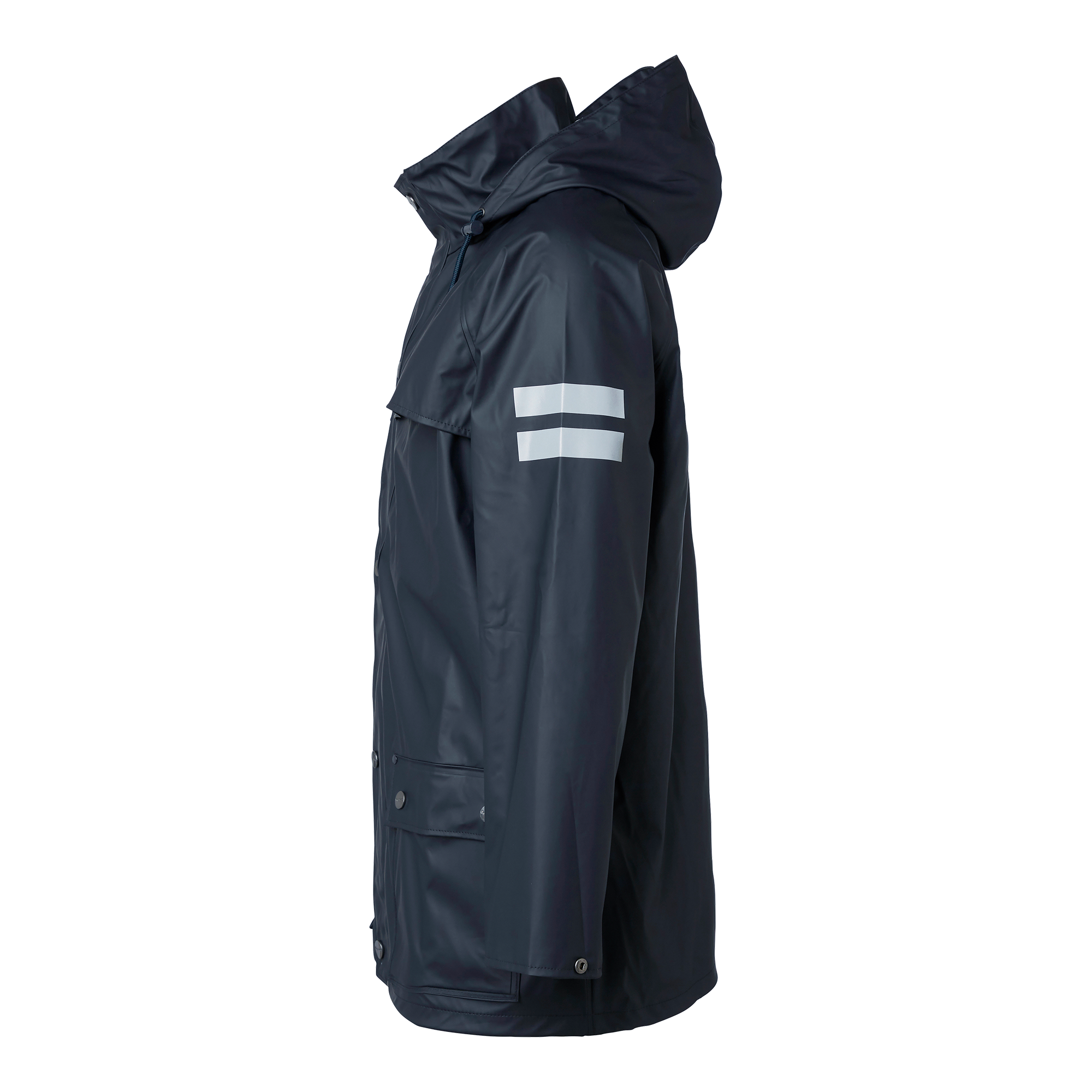 Sadetakki, pituus 80 cm, valmistettu sileästä stretch-materiaalista, jossa on hitsatut saumat. Takissa on kaksi läpällistä etutaskua, vetoketju läpällä ja painonapeilla sekä kiristysnauhalla varustettu huppu. Säädettävät hihansuut varmistavat optimaalisen istuvuuden.