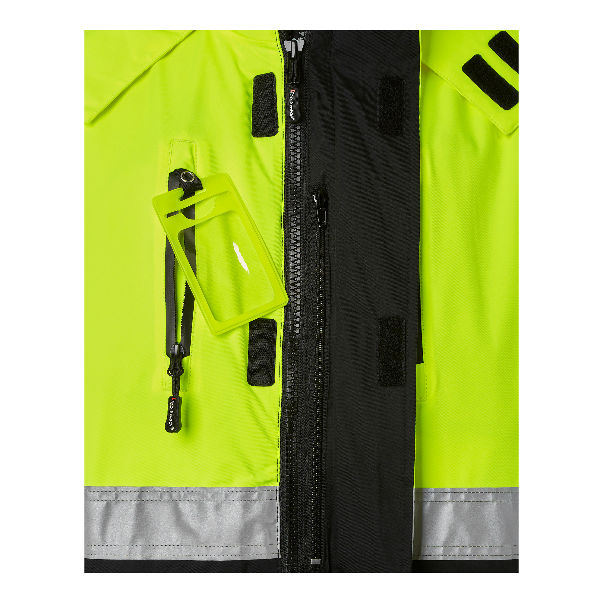Top Swede 122 Jacket -turvatakki on tuulen- ja vedenpitävä talvitakki, joka on suunniteltu optimaaliseen mukavuuteen ja toimivuuteen. Tämä takki on ihanteellinen rakennus- ja teollisuusalan ammattilaisille. Teipatut saumat takaavat, että pysyt kuivana ja mukavana koko työpäivän ajan. Joustava ulkokangas lisää liikkuvuutta ja mukavuutta, ja takki on vuorattu tikkauksella, jonka lisäksi fleecekaulus antaa lisälämpöä. Vetoketju ulottuu kaulukseen asti, ja säädettävä, irrotettava huppu tarjoaa lisäsuojaa sääolosuhteilta. Takissa on kaksi vedenpitävällä vetoketjulla varustettua rintataskua, joista toisessa on puhelintasku ja irrotettava henkilökorttitasku. Karttatasku vetoketjulla sijaitsee läpän alla, ja kaksi vedenpitävillä vetoketjuilla varustettua etutaskua on vuorattu lämpimällä fleecellä. Lisäksi takissa on kaksi vetoketjullista sisätaskua. Hihansuissa on tarranauhalla säädettävät hihansuut, ja helmassa kiristysnauha varmistaa säädettävän istuvuuden. Top Swede tunnetaan korkeasta laadustaan, eikä 122 Jacket ole poikkeus. Takki on suunniteltu vastaamaan ammattilaisten korkeisiin vaatimuksiin antaen luotettavuutta ja toimivuutta vaativimmissakin työolosuhteissa. Valitse Top Swede, jos haluat työvaatteet, joihin voit luottaa työympäristöstä riippumatta.