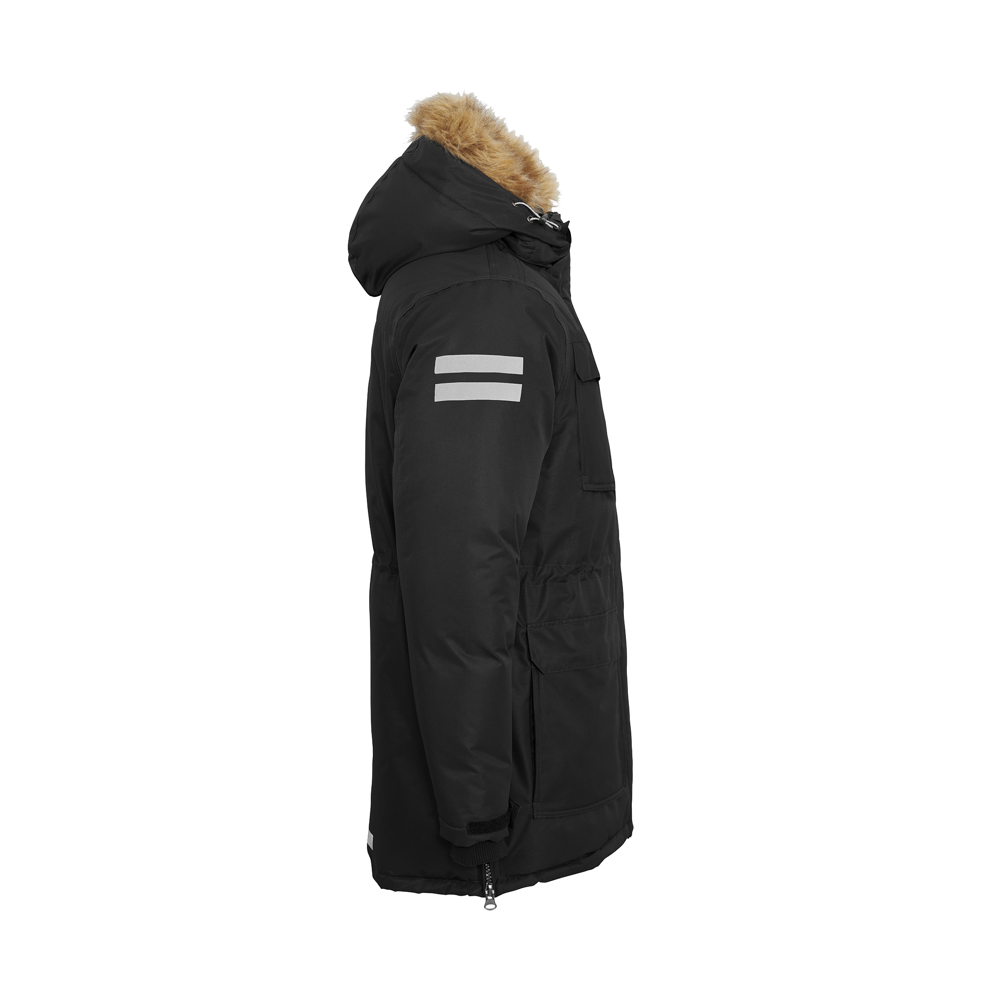 Talviparka kierrätettyä polyesteriä. Tuulen- ja vedenpitävä teipatuilla saumoilla. Päällikankaassa PFC-vapaa Bionic Eco -pintakäsittely. Useita taskuja, kiristysnyöri vyötäröllä ja vetoketjuhalkio sivuilla takaa istuvuuden. Hihoissa säädettävät polyesteriresorit, irrotettava ja säädettävä huppu.