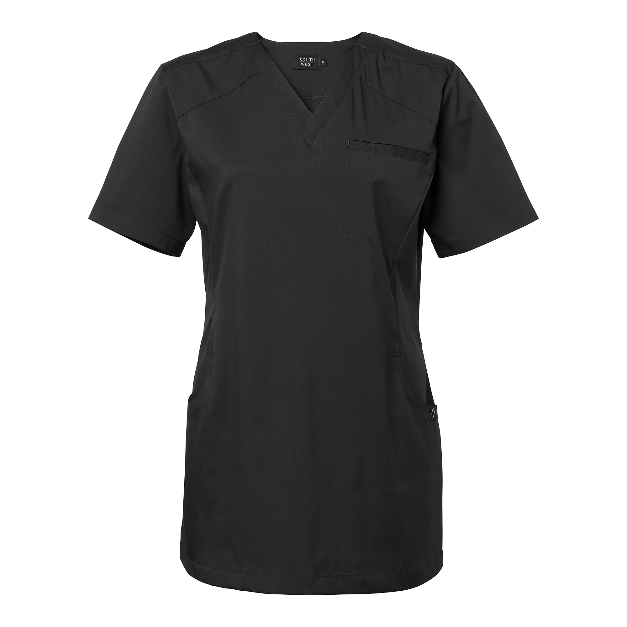 Tutustu Linn Blouse -paitaan – moderniin ja toiminnalliseen paitaan, joka on suunniteltu erityisesti terveys-, hoito- ja hyvinvointialan ammattilaisille. Tämä V-pääntieinen naisten pusero yhdistää tyylikkään muotoilun ja älykkäät toiminnot, ja se on valmistettu South Westin mukavuutta, kestävyyttä ja liikkumisvapautta korostavien arvojen mukaisesti. Naisellinen istuvuus syntyy kevyesti kavennetusta vyötäröstä ja edessä ja takana olevista prinsessasaumoista, jotka luovat ammattimaisen ja huolitellun ilmeen ilman mukavuudesta tinkimistä. Linn Blouse sisältää käytännöllisiä yksityiskohtia, jotka helpottavat työpäivää: kaksi tilavaa etutaskua, joista toisessa on puhelintasku ja avainrengas, rintatasku sekä huomaamattomat sivupaneelit, joissa on lisätaskut. Sivusauman takaosan halkio parantaa liikkumisvapautta – täydellinen ratkaisu aktiiviseen työympäristöön. South Westin hoitoalan vaatteet on suunniteltu huolella niille, jotka pitävät huolta toisista. Harkitut yksityiskohdat, nykyaikaiset materiaalit ja koko päivän kestävä istuvuus tekevät tästä paidasta erinomaisen valinnan ammattilaisille, jotka arvostavat toimivuutta, mukavuutta ja edustavaa ulkonäköä.