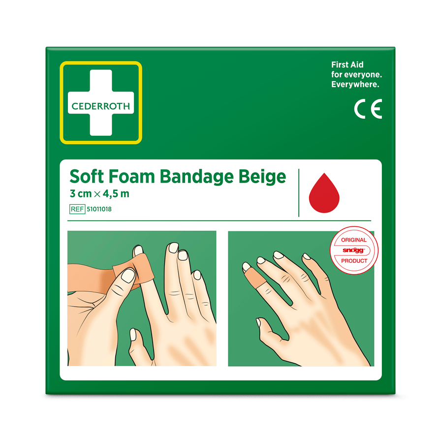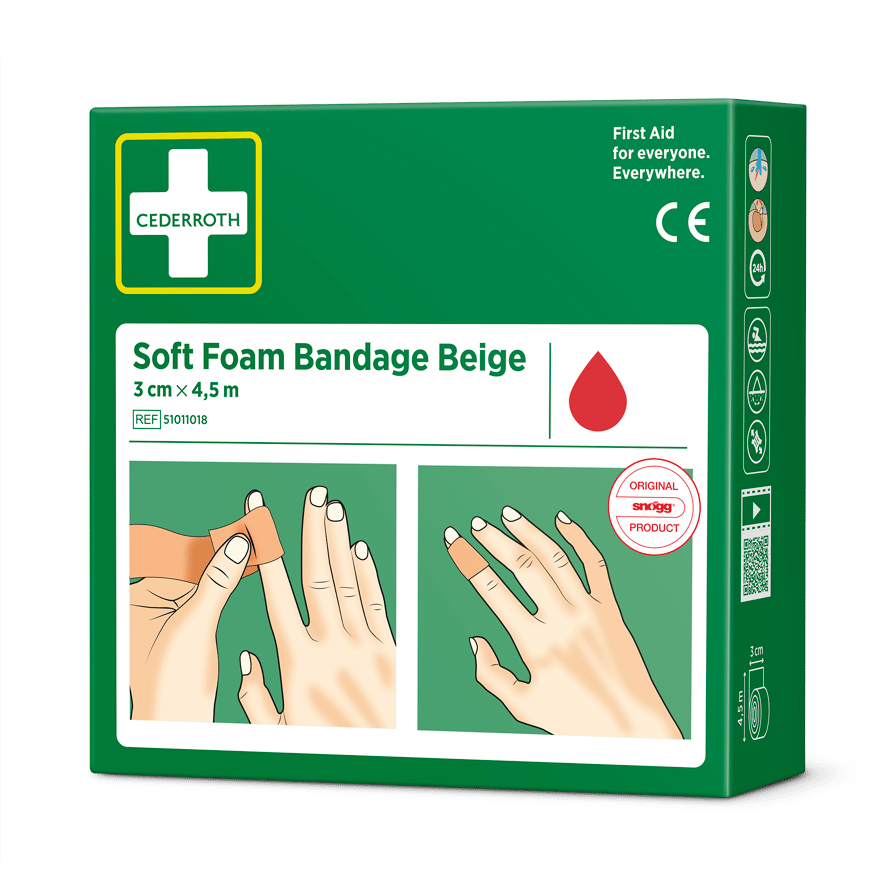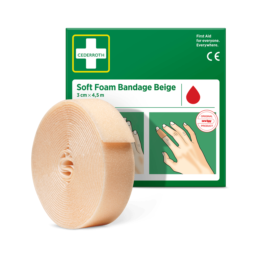 Cederroth Soft Foam Bandage Beige med 3 cm bredde passer perfekt for fingre eller tær. Passer som refill til Soft Foam Bandage 2-in-1 Dispenser (REF 510004108).