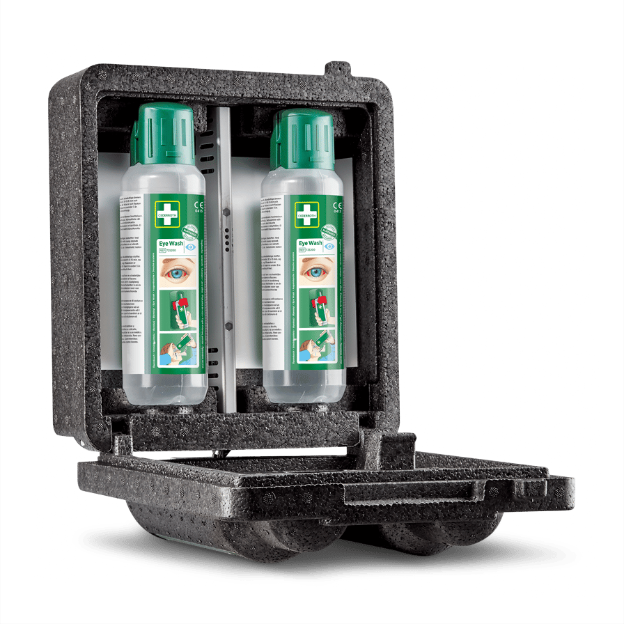 Varmeskap i EPP med plass til 2 stk Cederroth Øyedusjflasker 500 ml