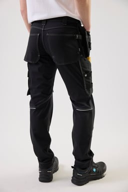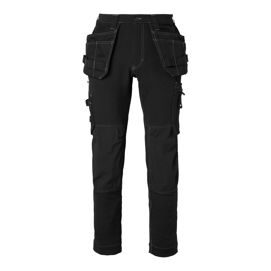 Craft-bukse i 4-veis stretch med forbøyde ben og knelommer i Cordura®. To lommer foran, forsterkede baklommer, løsthengende spikerlommer med ekstra rom, benlomme med glidelås og refleksdetaljer bak. Ideell for krevende arbeidsmiljøer.