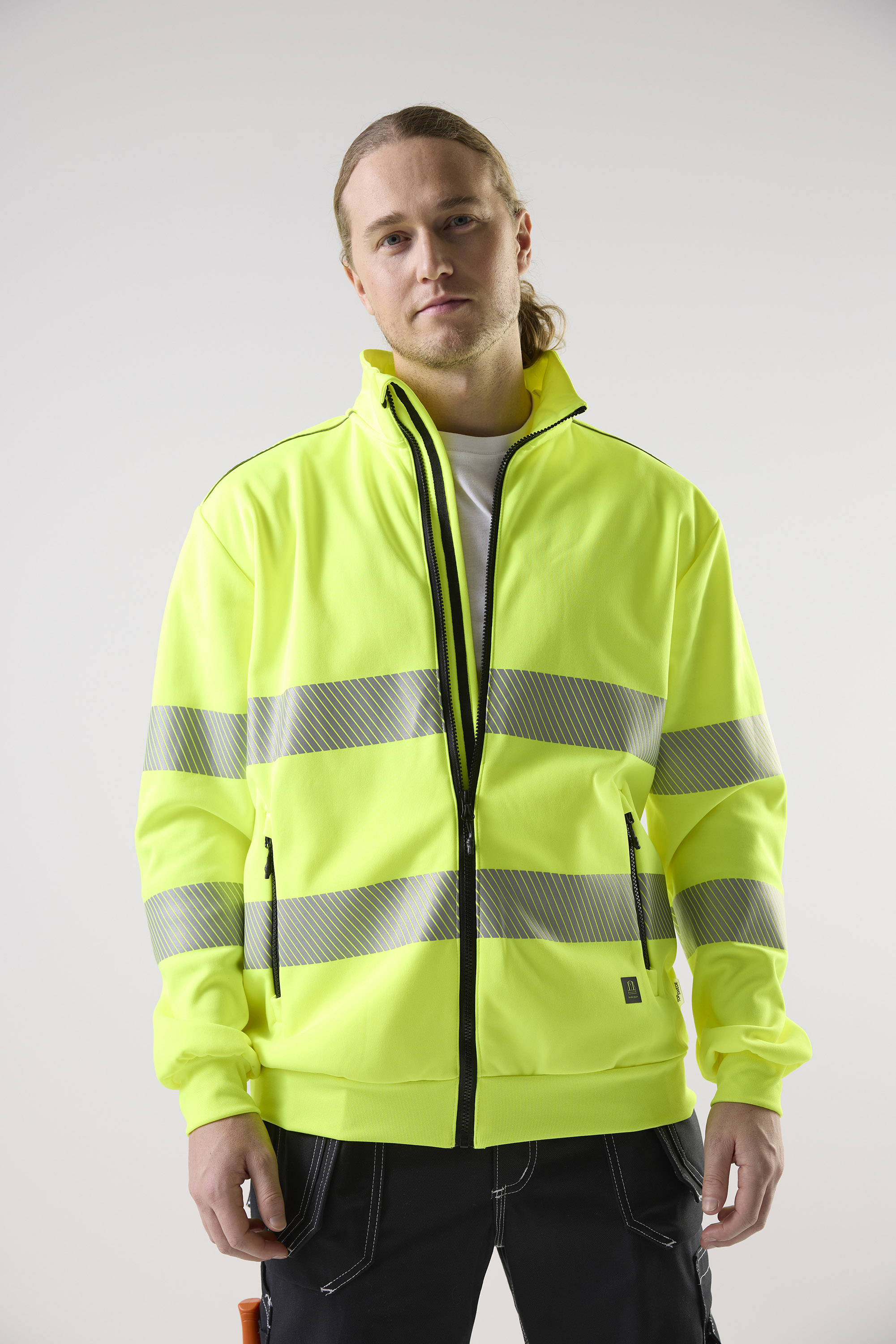 Oppdag Top Swedes 283 Sweat Fullzip, en varsel-sweatshirt med hel glidelås, designet for å tilby både komfort og sikkerhet for fagfolk innen bygg og industri. Laget i resirkulert polyester kombinerer 283 Sweat Fullzip holdbarhet med høy komfort for lange og krevende arbeidsdager. Hel glidelås, ribbestrikket kant nederst og på ermene samt segmentert refleks gir praktisk funksjonalitet og god passform. Den fluoriserende gule fargen og refleksdetaljene sørger for at du er godt synlig i alle arbeidsmiljøer. Enten du jobber på byggeplassen, i industrien eller andre miljøer der synlighet er avgjørende, er Top Swedes 283 Sweat Fullzip et pålitelig valg. Velg Top Swede for arbeidsklær som kombinerer holdbarhet, komfort og sikkerhet — hver eneste arbeidsdag.