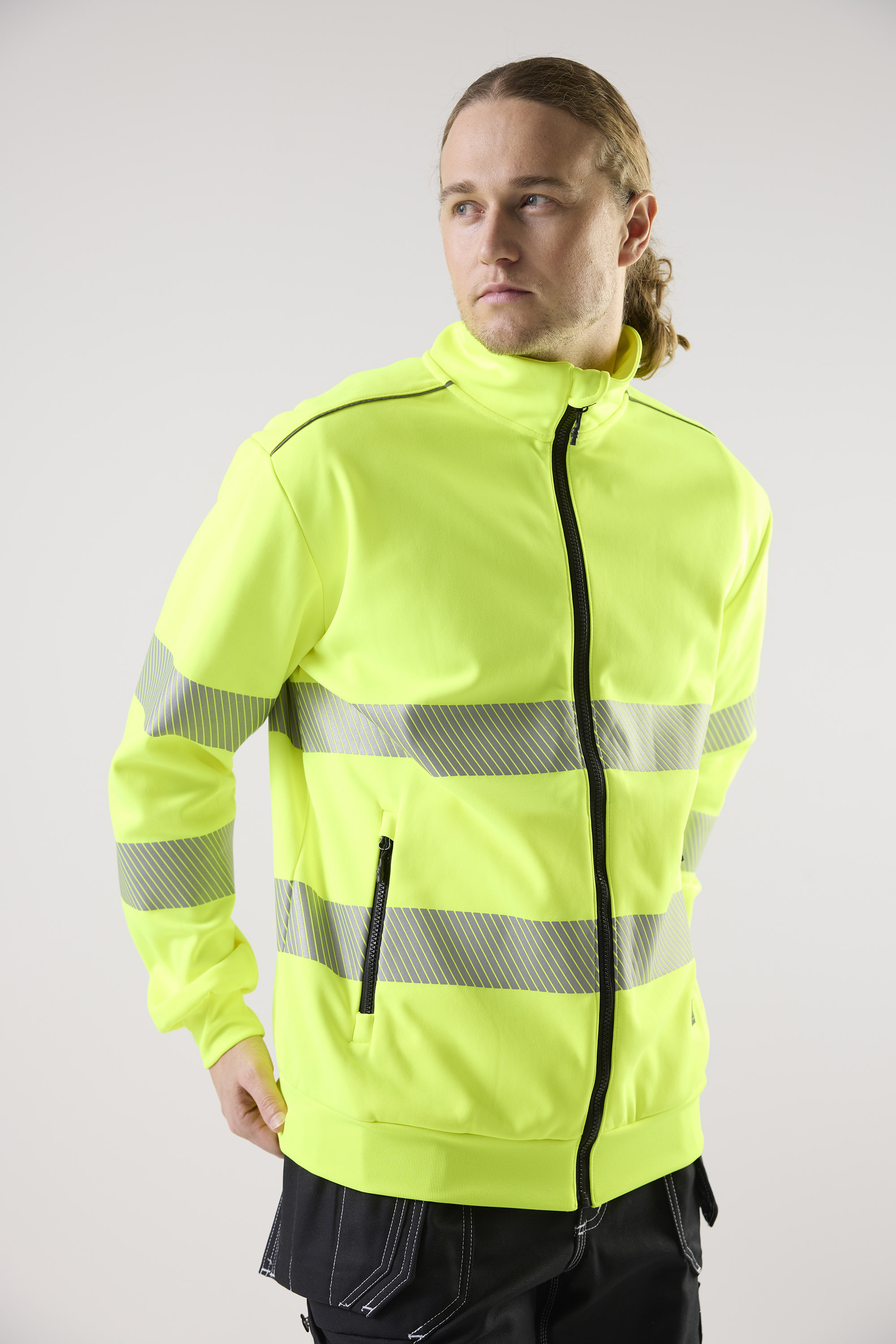 Varsel-sweatshirt med hel glidelås, segmentert refleks samt ribbestrikket kant nederst og på ermene. Laget i resirkulert polyester for holdbarhet og komfort. Perfekt for krevende arbeidsmiljøer.