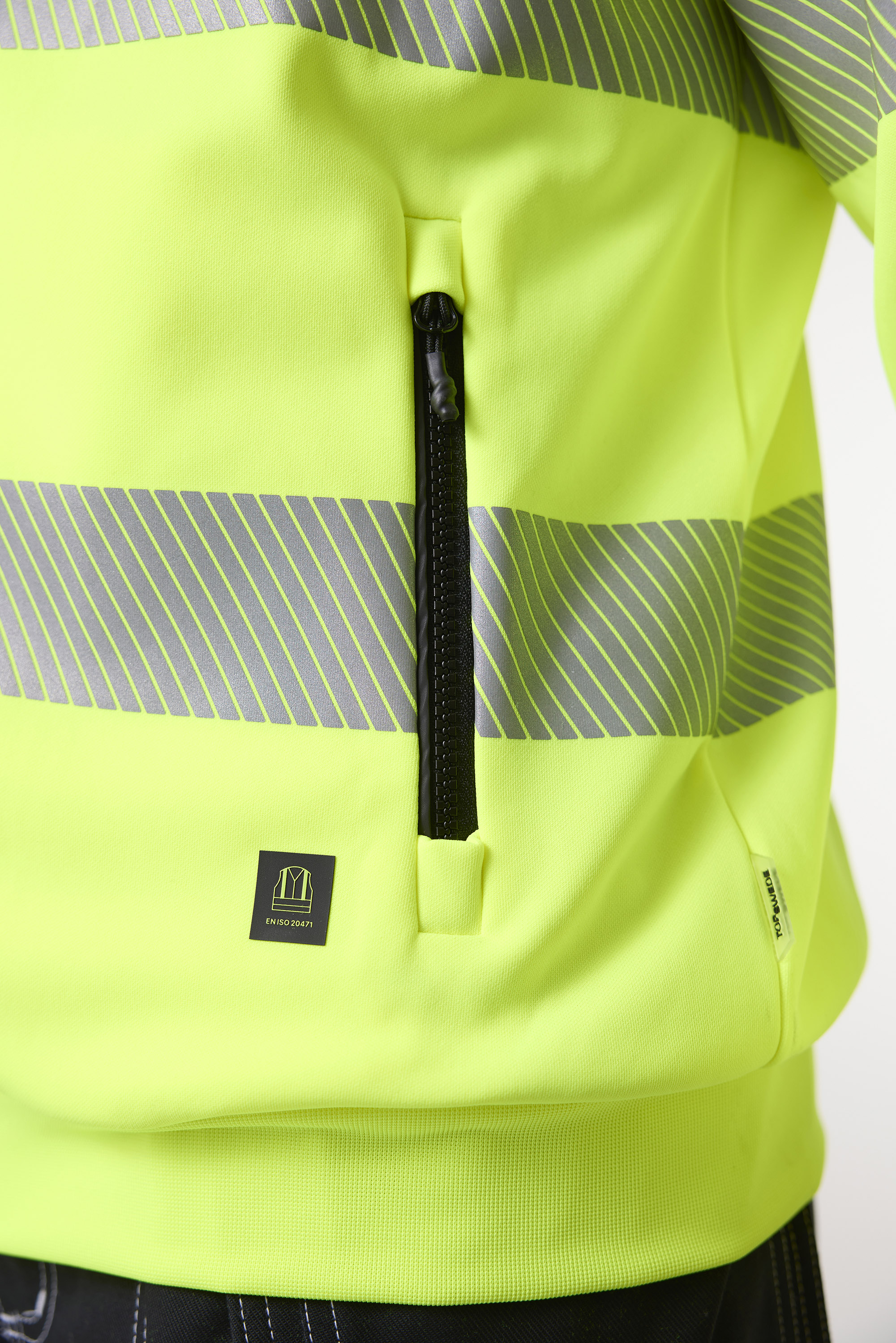 Oppdag Top Swedes 283 Sweat Fullzip, en varsel-sweatshirt med hel glidelås, designet for å tilby både komfort og sikkerhet for fagfolk innen bygg og industri. Laget i resirkulert polyester kombinerer 283 Sweat Fullzip holdbarhet med høy komfort for lange og krevende arbeidsdager. Hel glidelås, ribbestrikket kant nederst og på ermene samt segmentert refleks gir praktisk funksjonalitet og god passform. Den fluoriserende gule fargen og refleksdetaljene sørger for at du er godt synlig i alle arbeidsmiljøer. Enten du jobber på byggeplassen, i industrien eller andre miljøer der synlighet er avgjørende, er Top Swedes 283 Sweat Fullzip et pålitelig valg. Velg Top Swede for arbeidsklær som kombinerer holdbarhet, komfort og sikkerhet — hver eneste arbeidsdag.