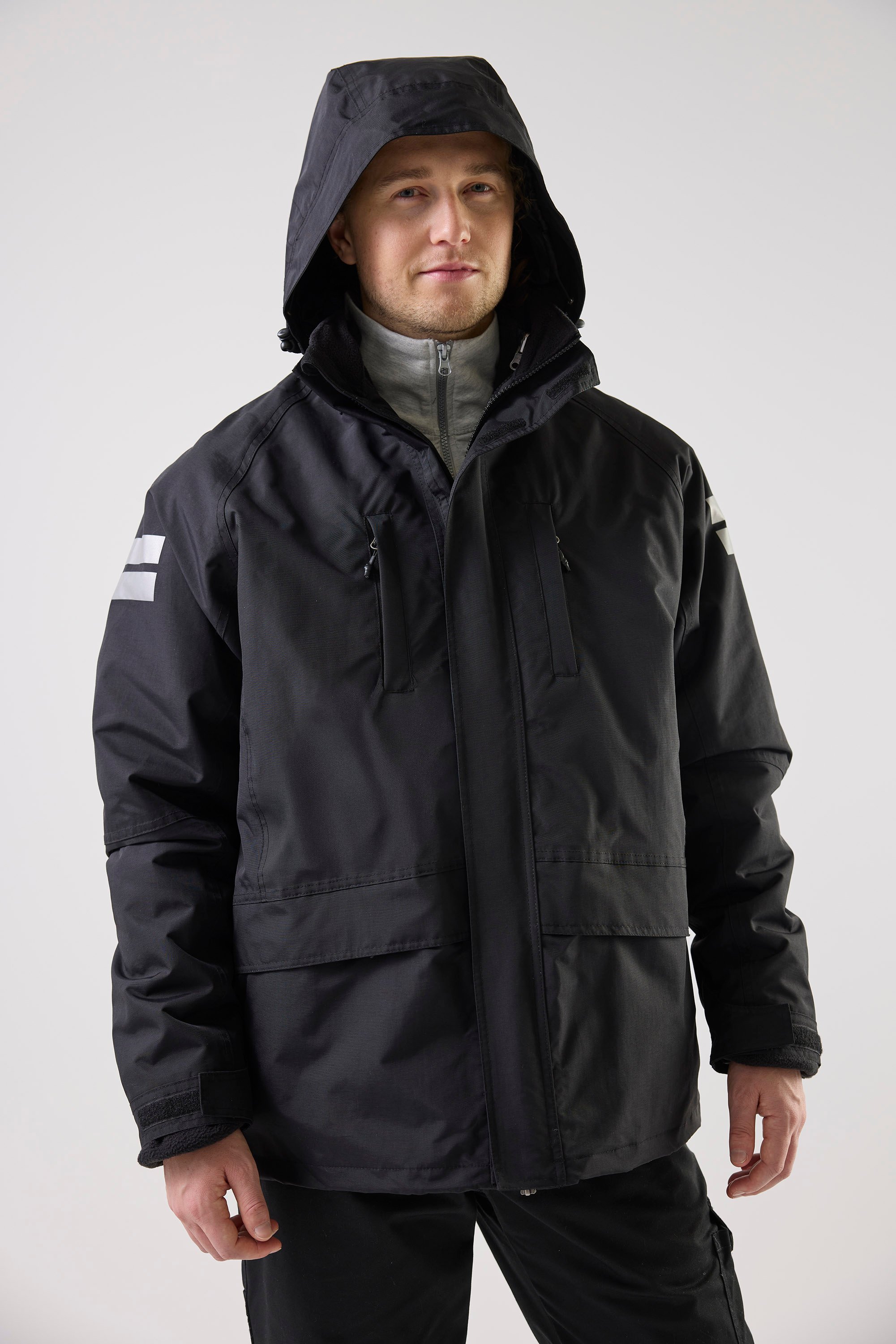 3-i-1 jakke fra Top Swede. Vind- og vanntett med teipede sømmer og uttagbar innerjakke i microfleece. Refleksdetaljer, avtakbar hette, flere lommer og justerbare mansjetter.