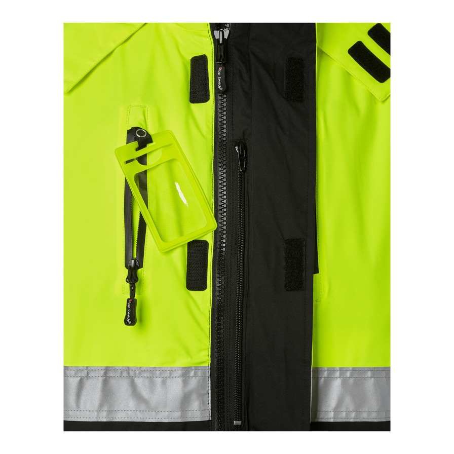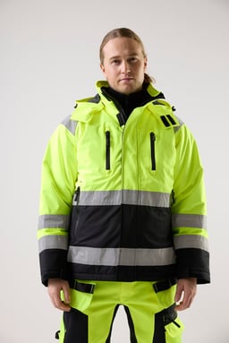 Vind- og vanntett vinterjakke fra Top Swede med stretchstoff, tapede sømmer og god pusteevne. Flere praktiske lommer og en justerbar, avtakbar hette gjør den perfekt til bygg- og industrijobber.