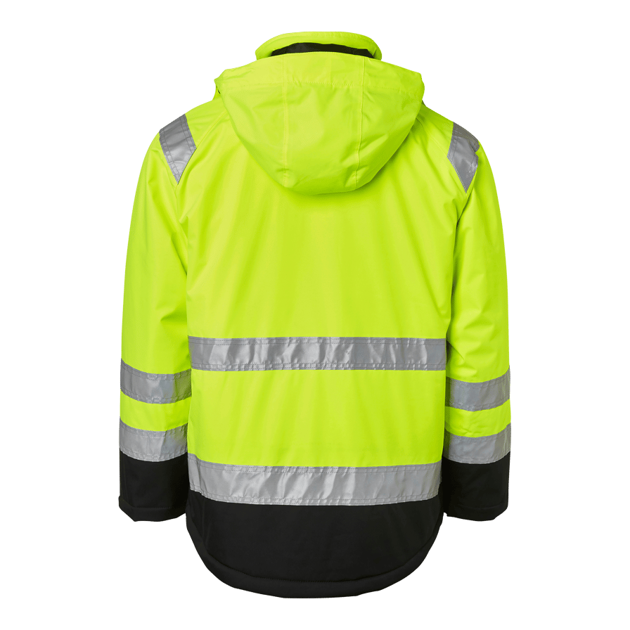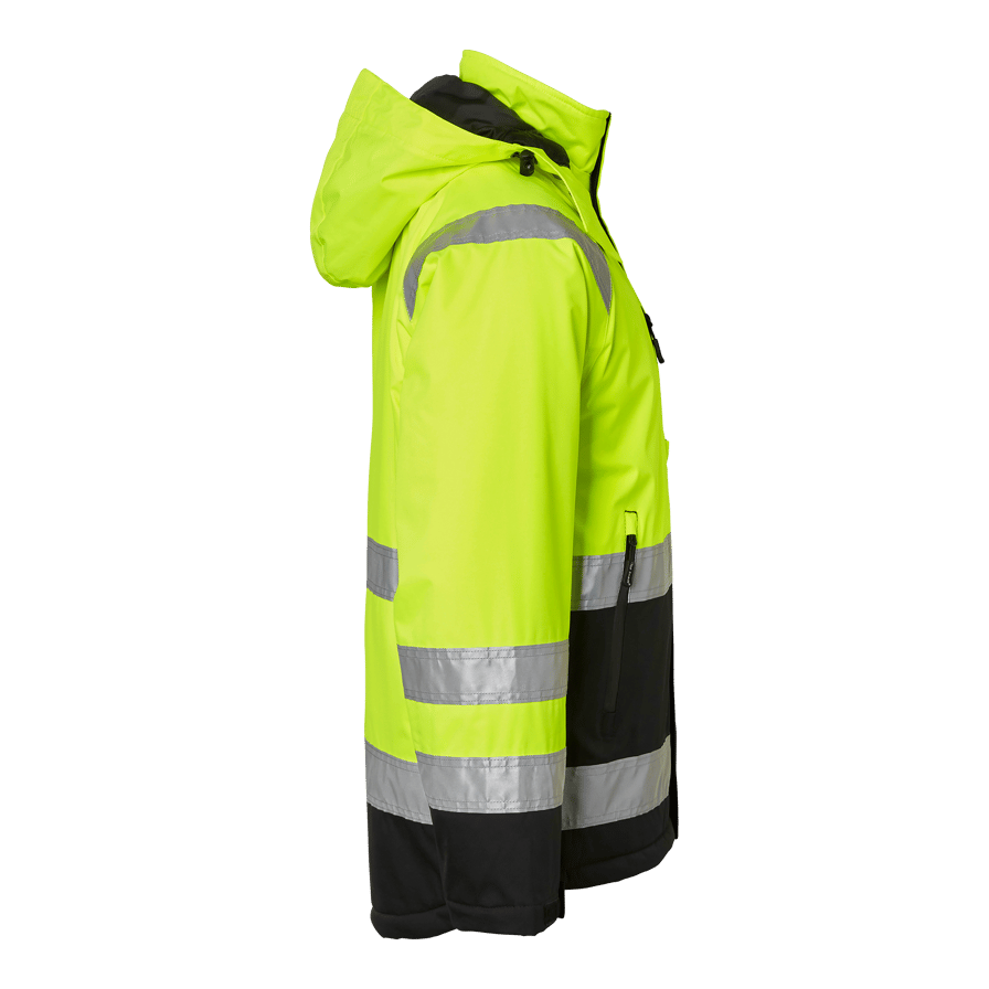 Vind- og vanntett vinterjakke fra Top Swede med stretchstoff, tapede sømmer og god pusteevne. Flere praktiske lommer og en justerbar, avtakbar hette gjør den perfekt til bygg- og industrijobber.